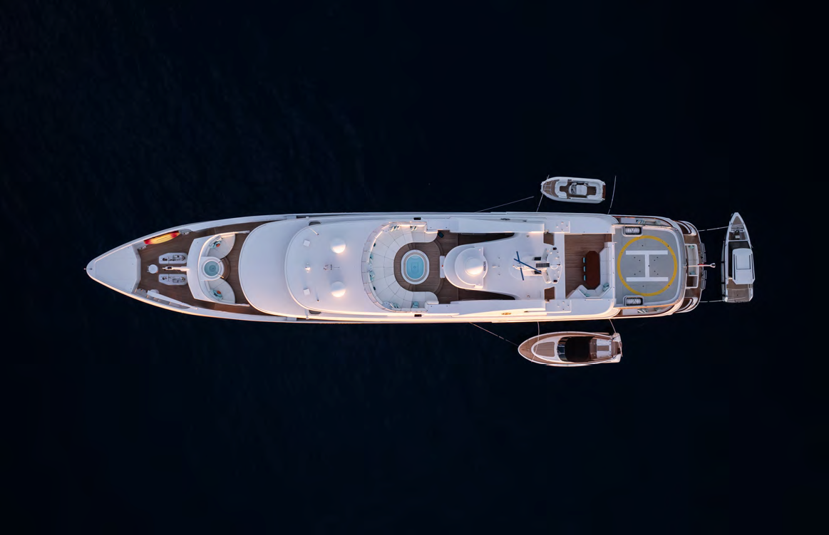 - Notable Features: helideck, guest elevator, two Jacuzzis, spa & sauna, observation lounge