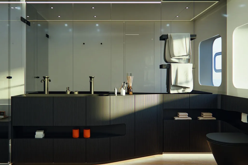 - Sleek, sporty exterior highlighting AB Yachts’ performance DNA