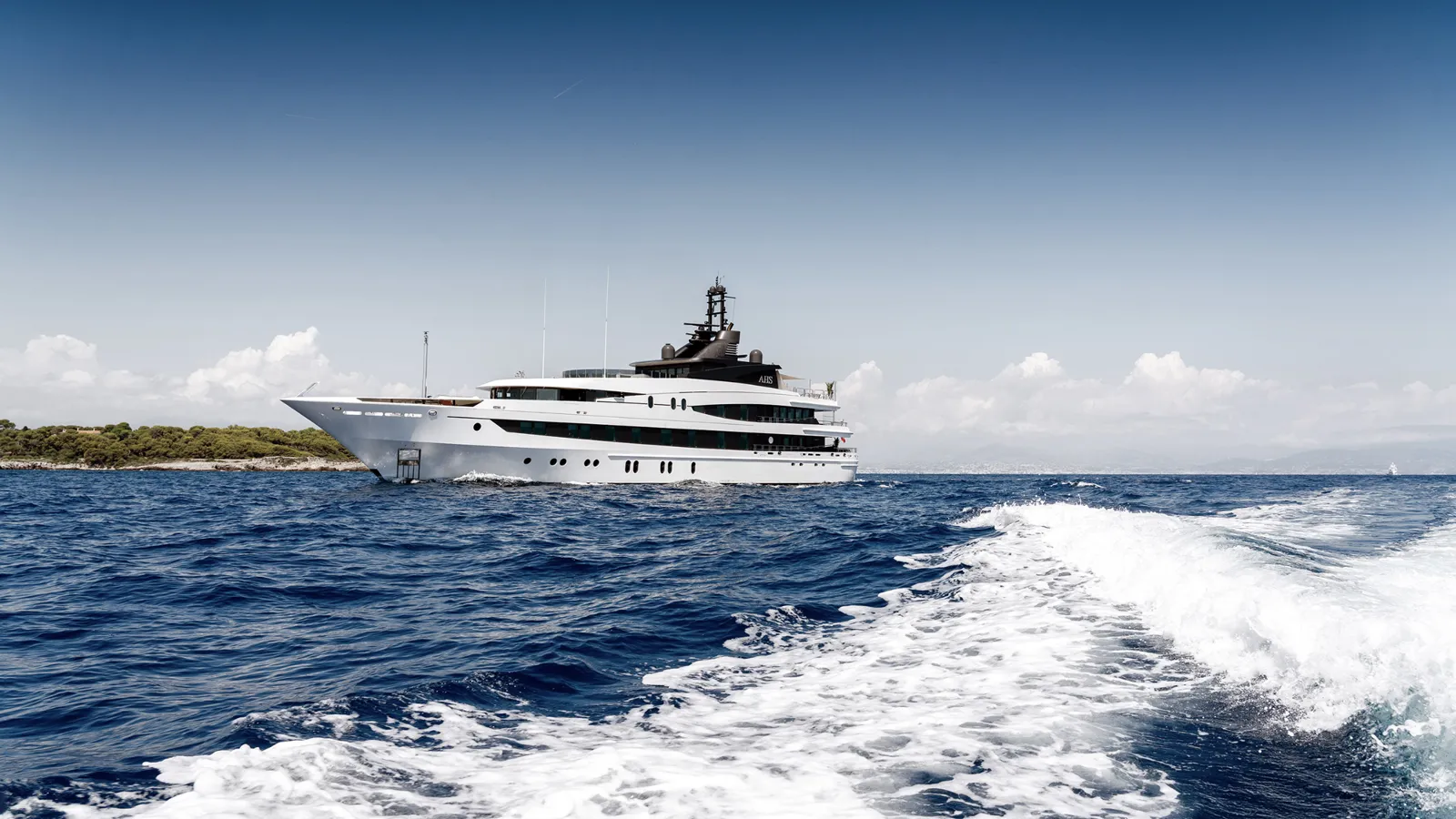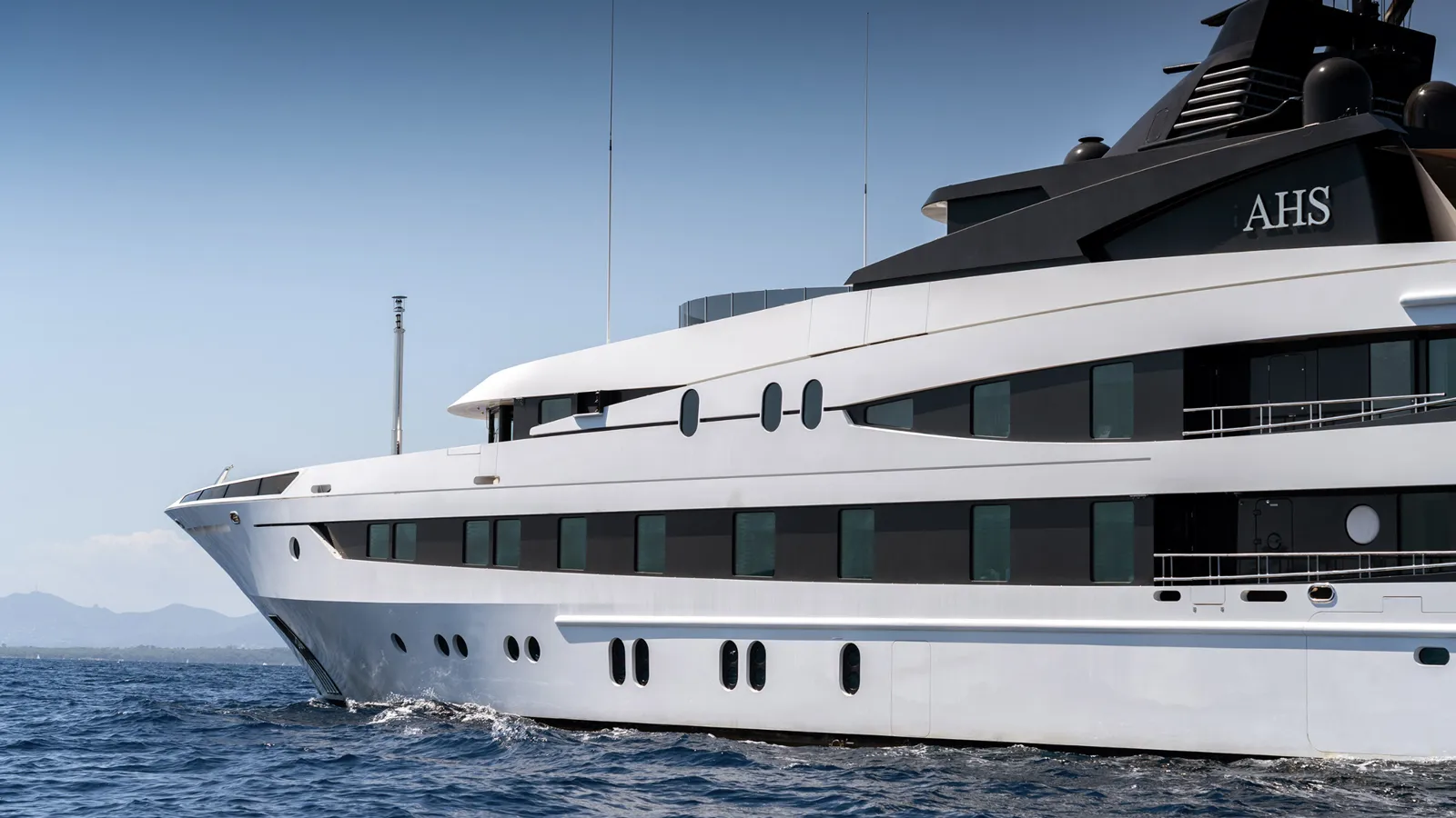 Designed by the renowned Alberto Pinto, AHS accommodates up to 16 guests in eight cabins. Her standout features include a full-beam master suite with a lounge, a double-sided drop-down TV, and a private office. Additional quarters consist of a VIP suite, four doubles, and two extra cabins for guests or staff.