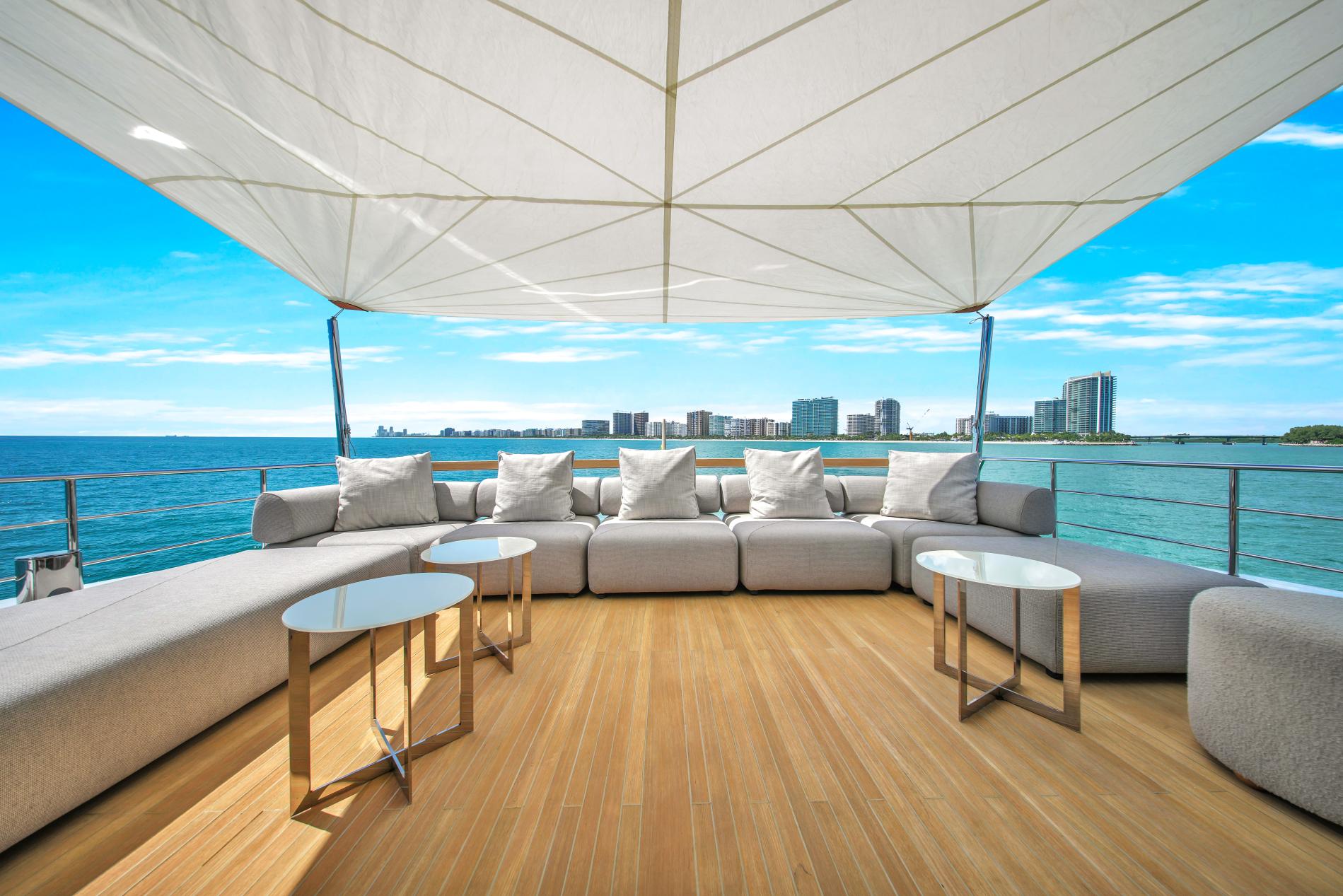 - Tranquil Bow Area: Enjoy a shaded seating area with sunpads for idyllic lounging.