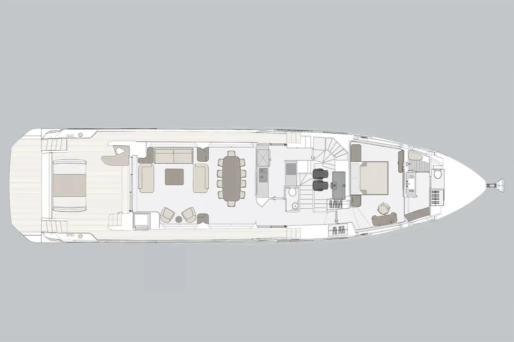 Built with precision, Aisha boasts a deep vee GRP hull paired with a carbon fiber superstructure. Her impressive dimensions include a 6.33m beam and a 2.04m draft, spread across two decks with a volume of 140 GT. She stands out as the seventh creation in the Grande 26M series.