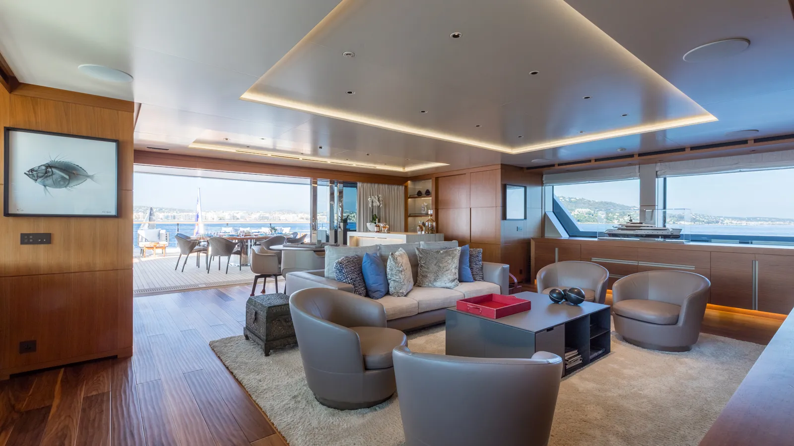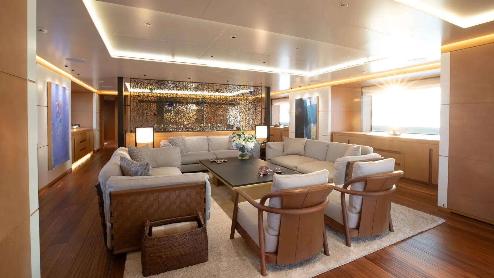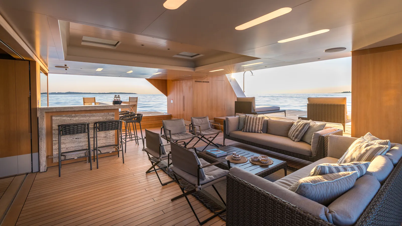 Maintained exclusively for private use, the yacht is presented in exceptional condition. Her interiors incorporate warm neutral tones, light woods, marble accents and extensive glazing that maximises natural light.