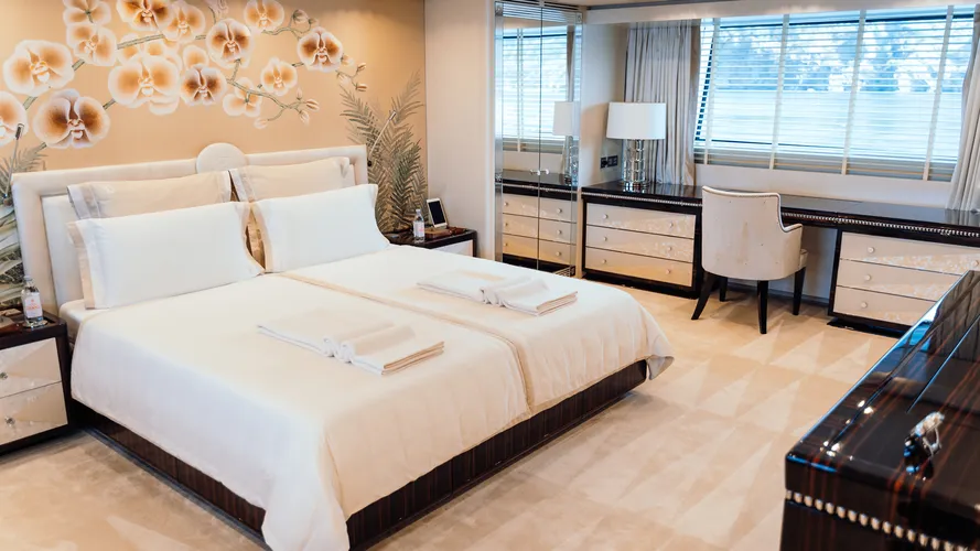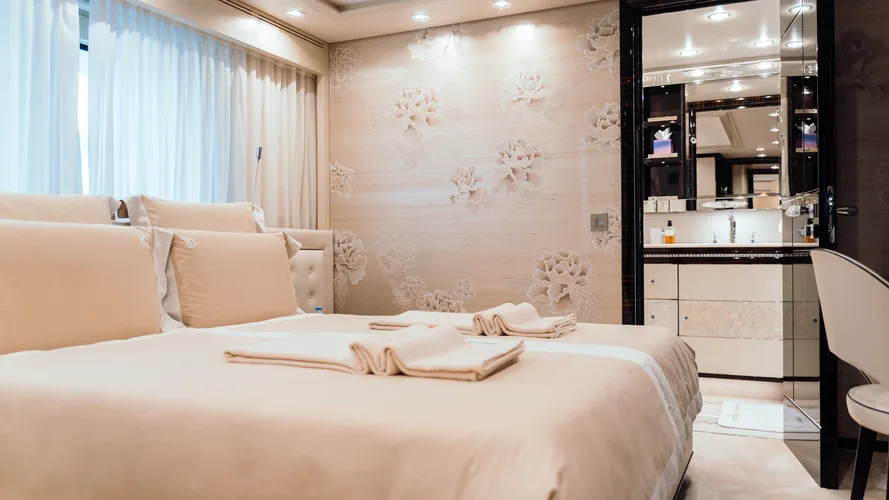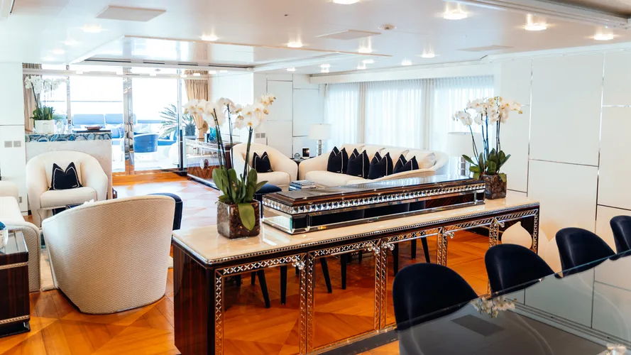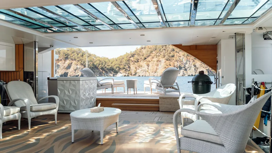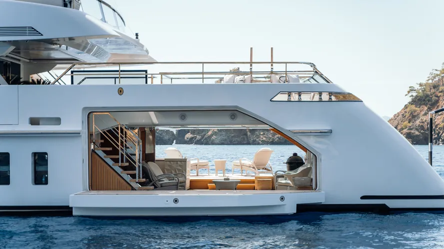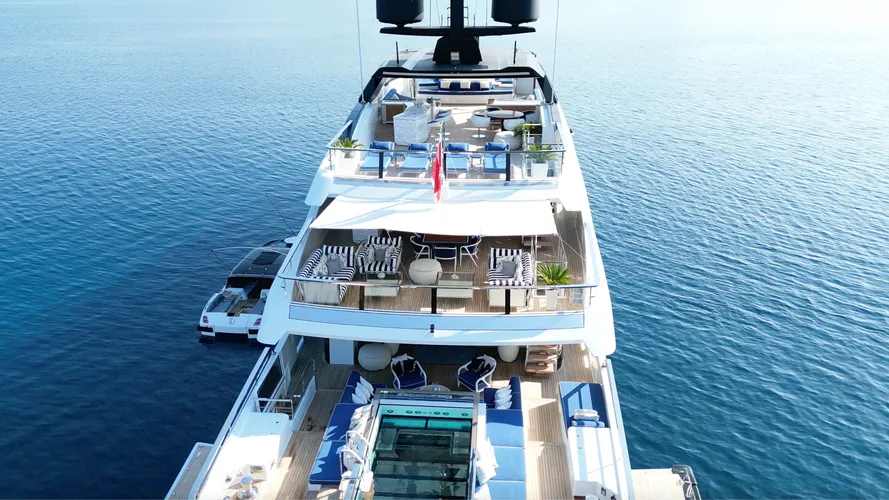 Her design boasts expansive glass areas that highlight ocean reflections alongside spacious interiors; technical advancements blend seamlessly with serene outdoor vistas complete with fold-down terraces enhancing port-starboard views at her beach club area—a testament to how superior new models can be when crafted right from inception.