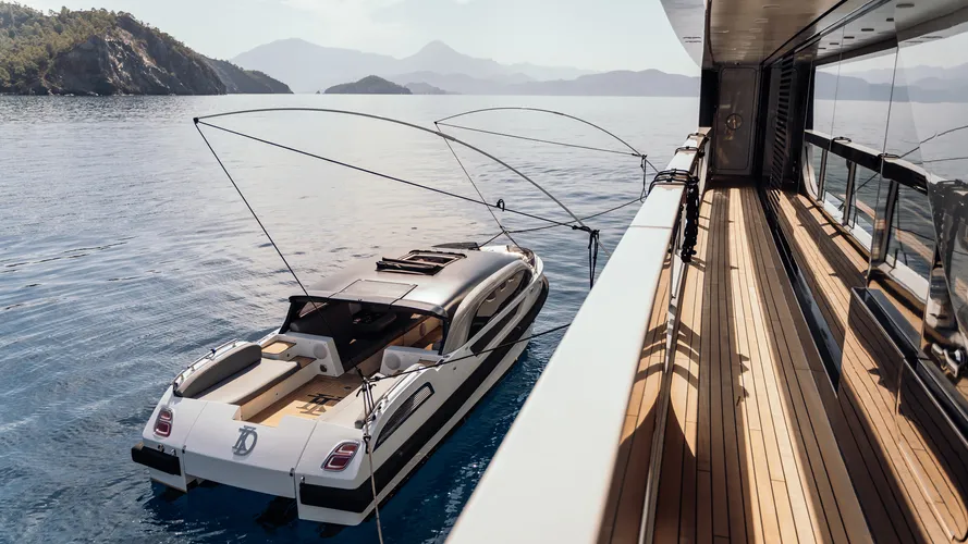 Extended originally from 52Steel series lengthened swim platforms enhance space further while strong bollards adapt easily between ‘stern-to’ moorings or rock settings alike—all bathed under natural light streaming through above deck pool casting tranquility below among freestanding furniture setups beside bars leading into fully equipped gymnasiums filled up Technogym equipment readying guests before plunging off Aft’s inflatable extensions facing lively marine landscapes beyond Horizon itself!