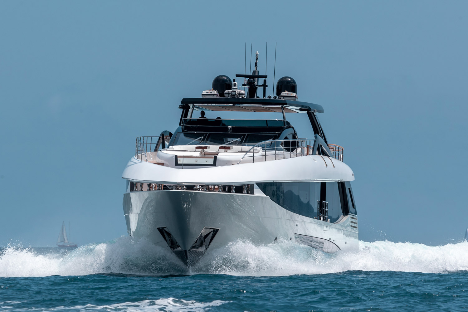 The Amer F 126 combines contemporary design, sustainable engineering, and customizable luxury. Styled by Antonio Luxardo of Optima Design, its clean lines and expansive glazing create bright, refined interiors. The main deck features a full‑beam master suite, complemented by four ensuite guest cabins. Outdoor amenities include a beach club platform, a spacious flybridge, and an optional foredeck Jacuzzi. Fully tailored interior options and quad Volvo Penta IPS propulsion deliver both comfort and efficient performance. Delivery is available within 24 months.