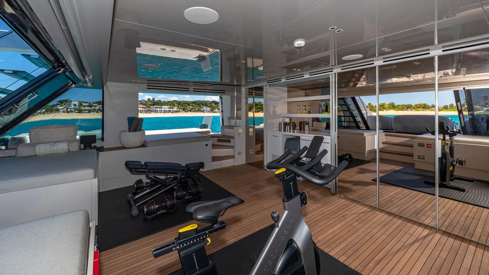 - Exterior: The design brilliantly merges full glass walls, bulwark cut-outs, and folding terraces, creating seamless ocean views. With a draft of only 1.9 meters, she navigates shallow waters effortlessly, perfect for destinations like The Bahamas.