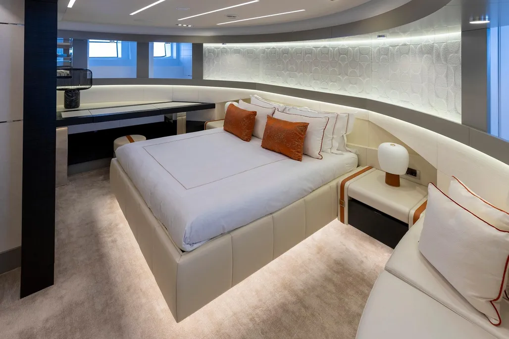 Arina zips across the waves with a top speed of 38 knots, cruising comfortably at 35. Her power-packed MTU diesel engines promise a range of up to 1400 nautical miles at 10 knots.
