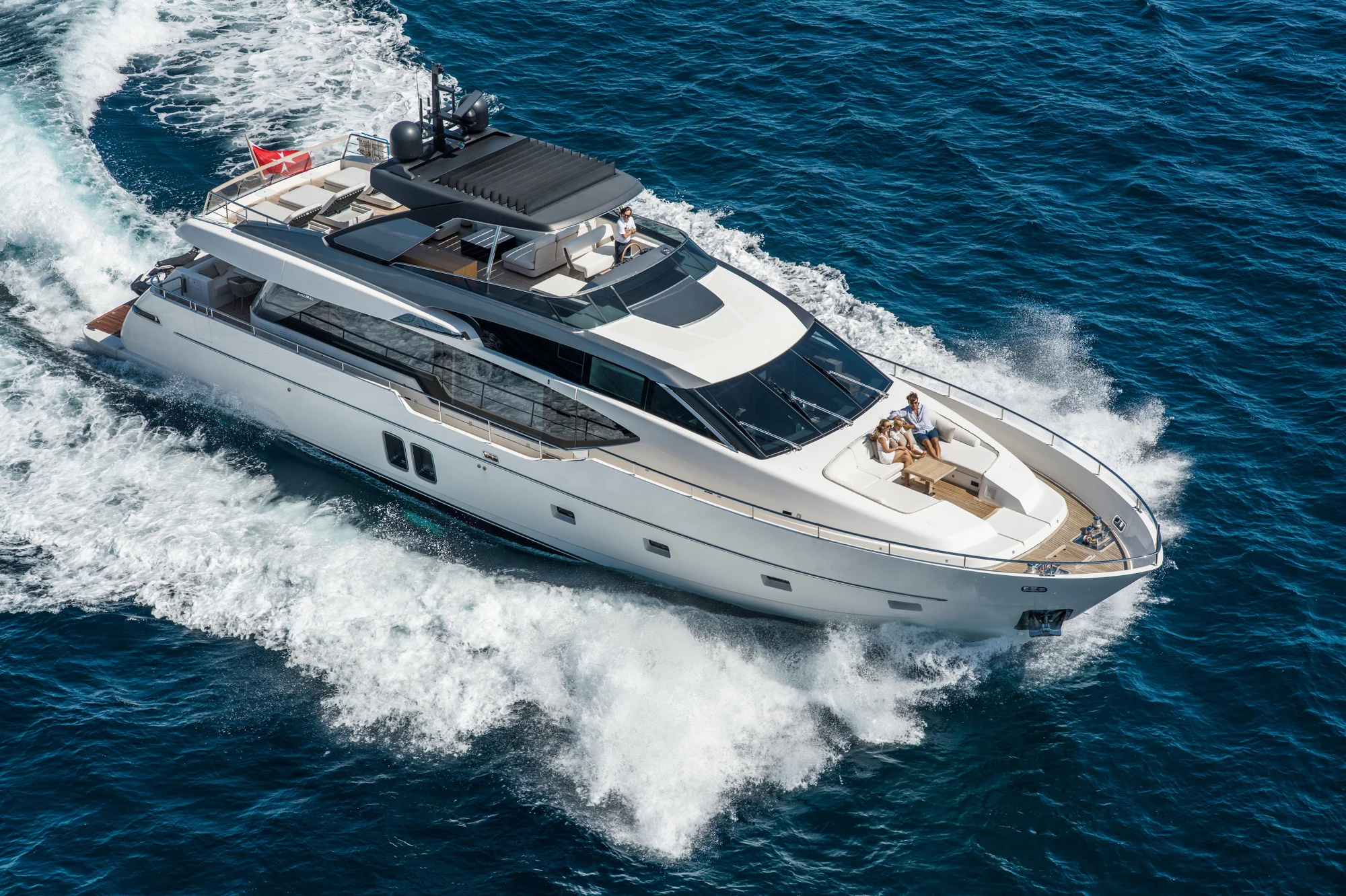 Designed by Zuccon International Project, this yacht represents the ideal balance of style, volume, and innovation. Powered by twin MAN engines, she offers a thrilling 27-knot cruising speed and up to 30+ knots at full throttle.