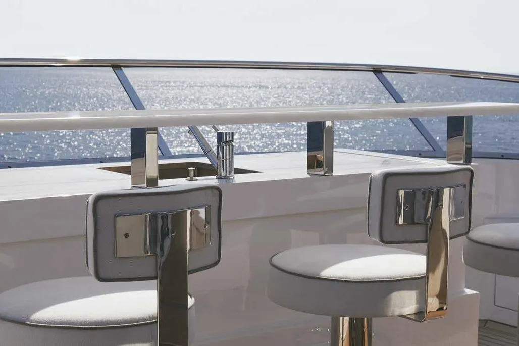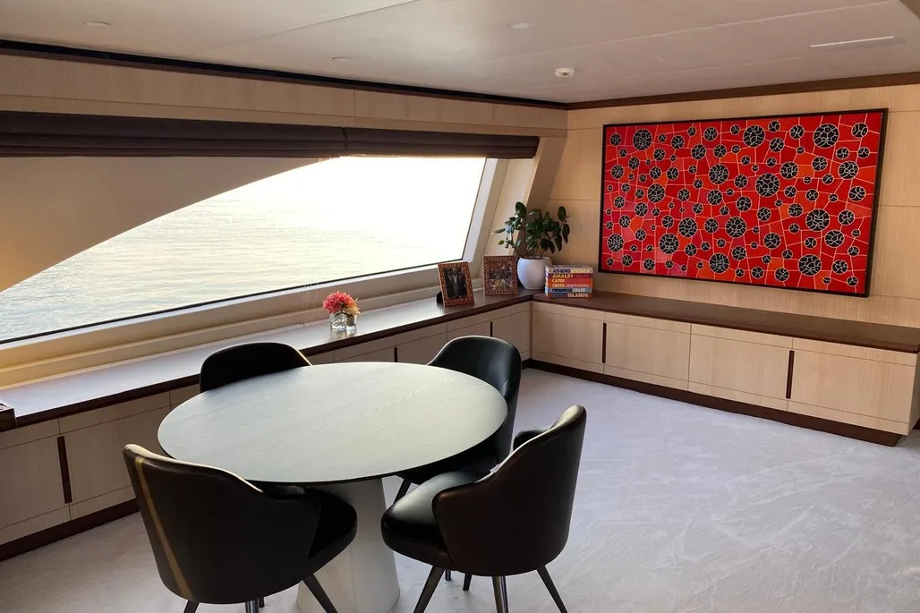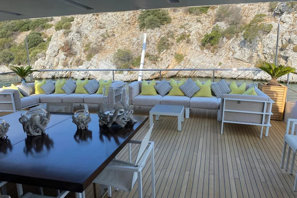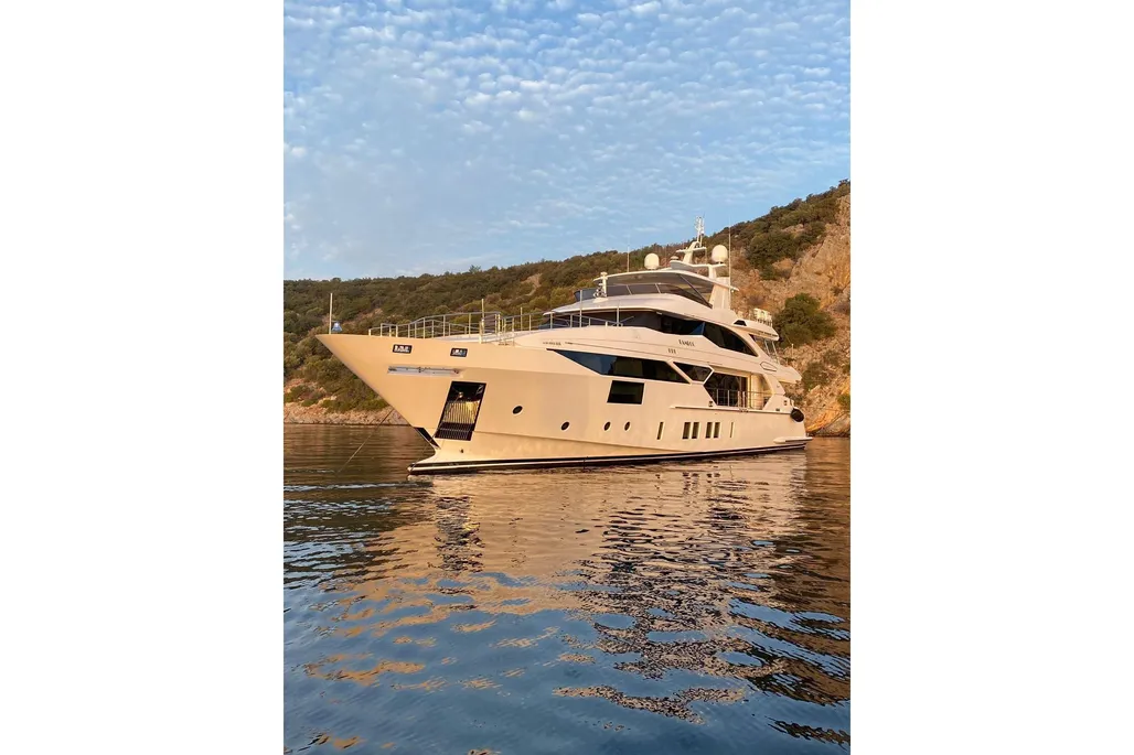 Measuring 38.1 meters, Bamboo was constructed in Italy by Benetti in 2019, part of the elite Fast 125 lineup. She zips along at 22 knots, cruises comfortably at 17.5 knots, and boasts a 1750 nautical mile range at 12 knots, powered by twin MTU diesel engines. Accommodating up to 10 guests across 5 staterooms, with a crew of 7 ready to cater to every whim, Bamboo has a gross tonnage of 320 GT and an 8.23-meter beam.