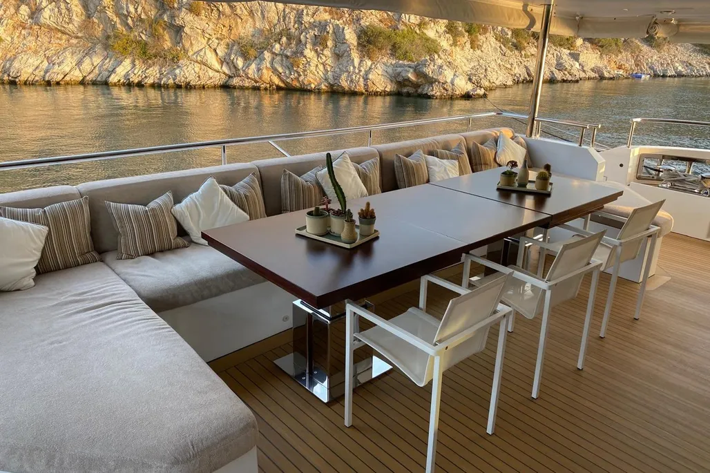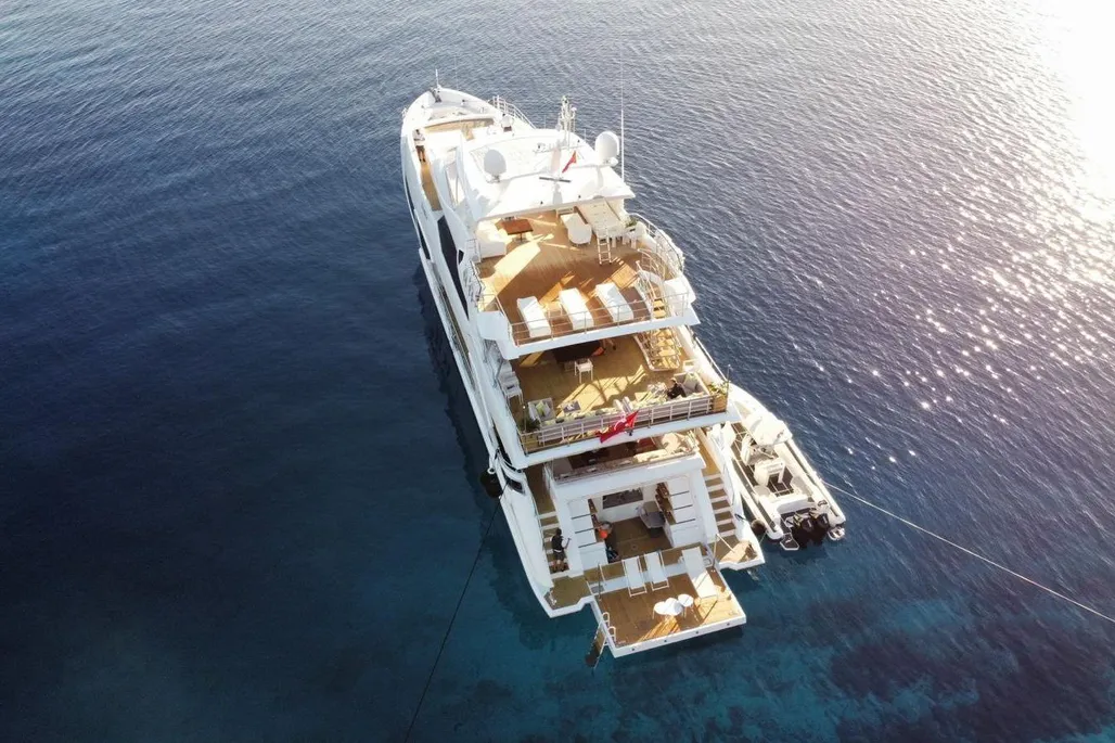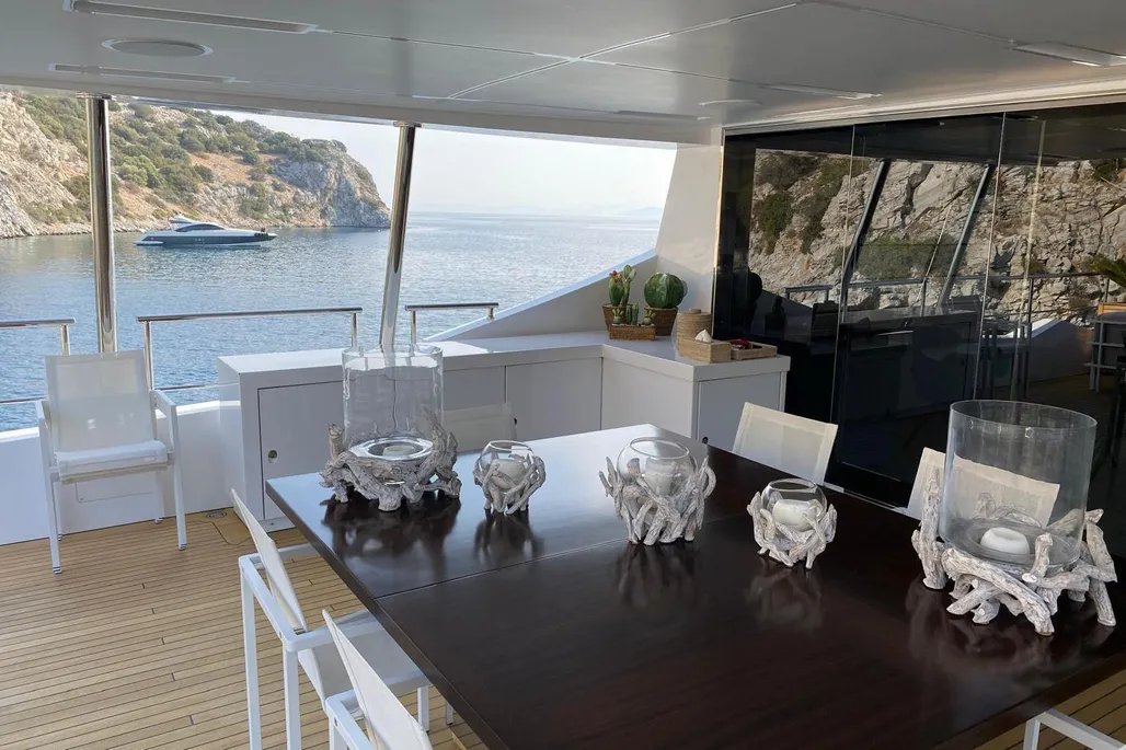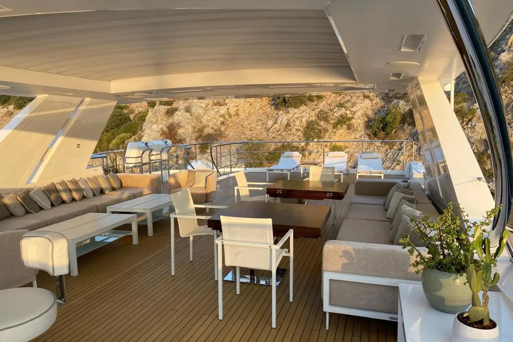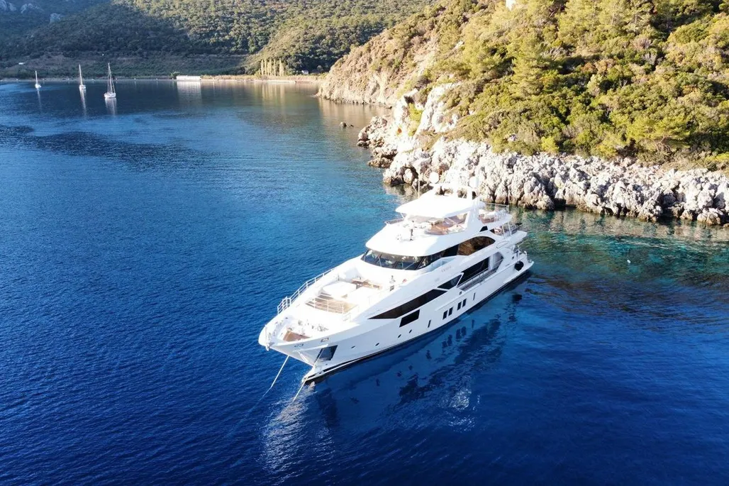 Measuring 38.1 meters, Bamboo was constructed in Italy by Benetti in 2019, part of the elite Fast 125 lineup. She zips along at 22 knots, cruises comfortably at 17.5 knots, and boasts a 1750 nautical mile range at 12 knots, powered by twin MTU diesel engines. Accommodating up to 10 guests across 5 staterooms, with a crew of 7 ready to cater to every whim, Bamboo has a gross tonnage of 320 GT and an 8.23-meter beam.