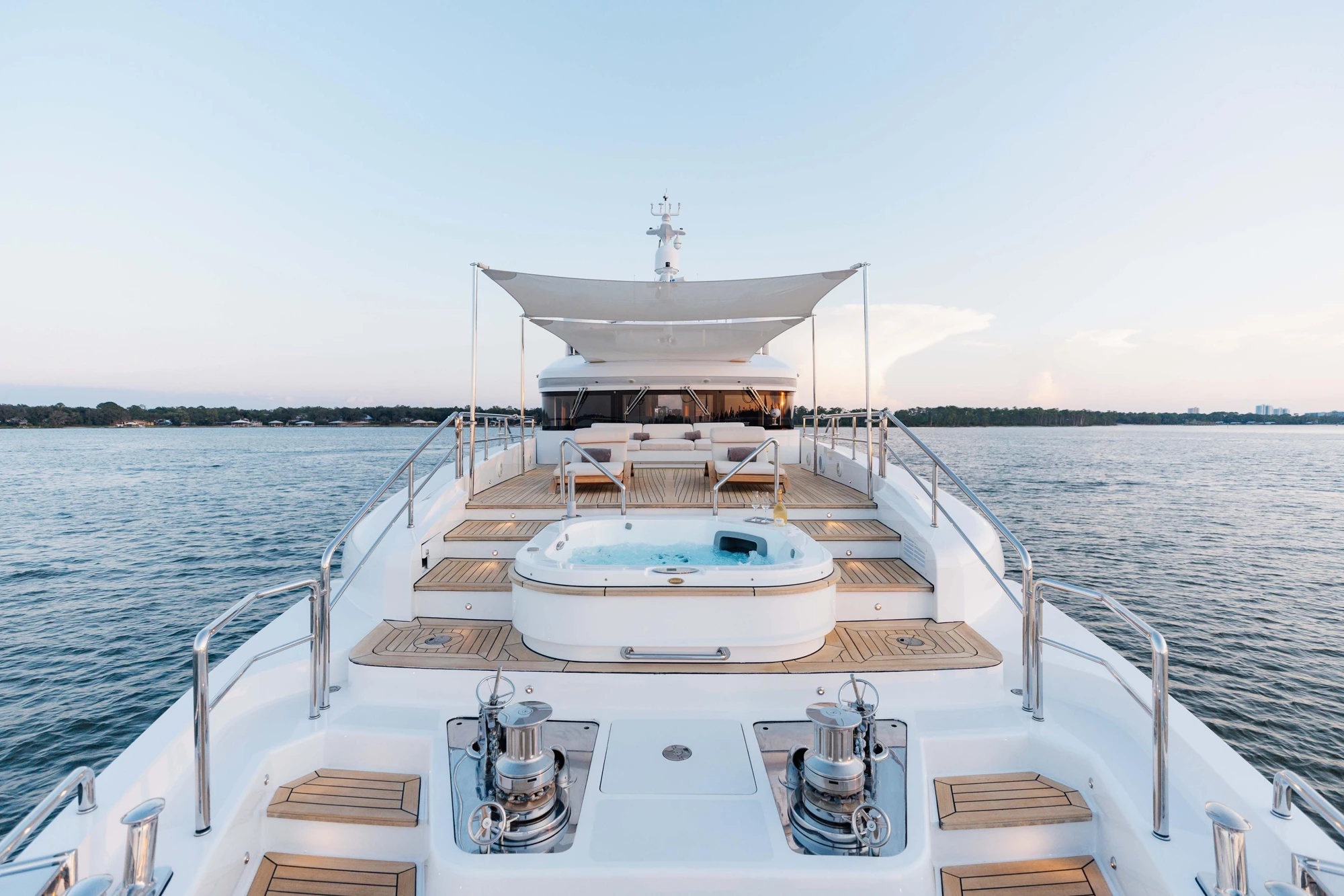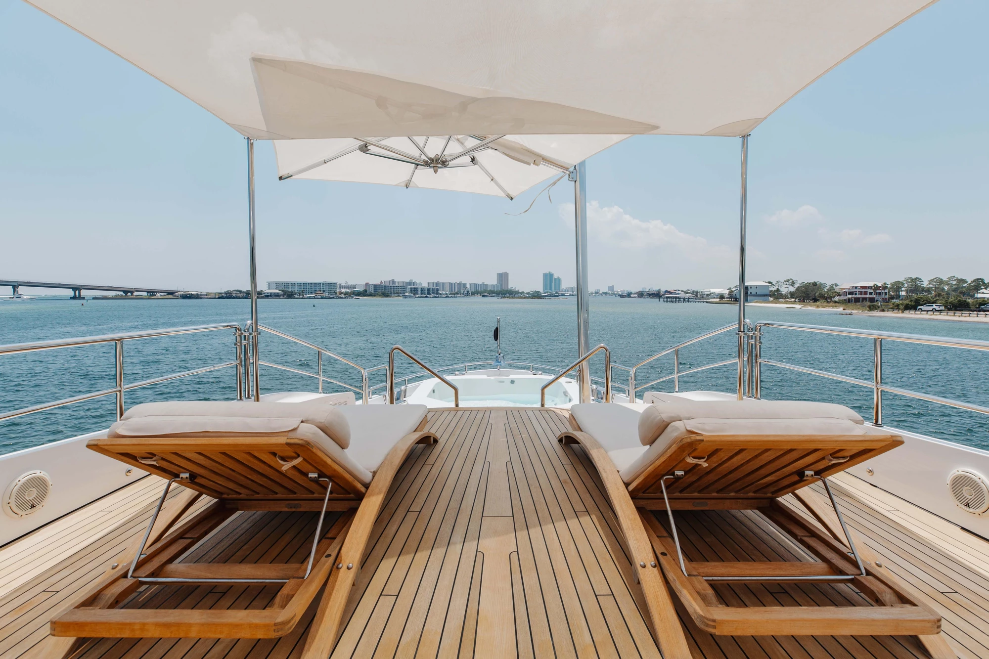 - Full-beam on-deck Master Suite, plus 2 queen VIPs and 2 twin suites
