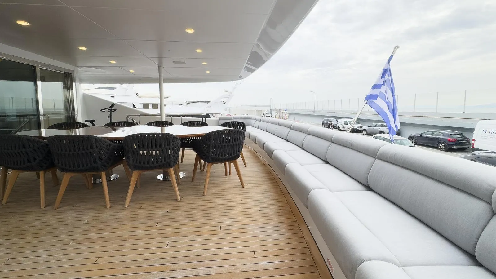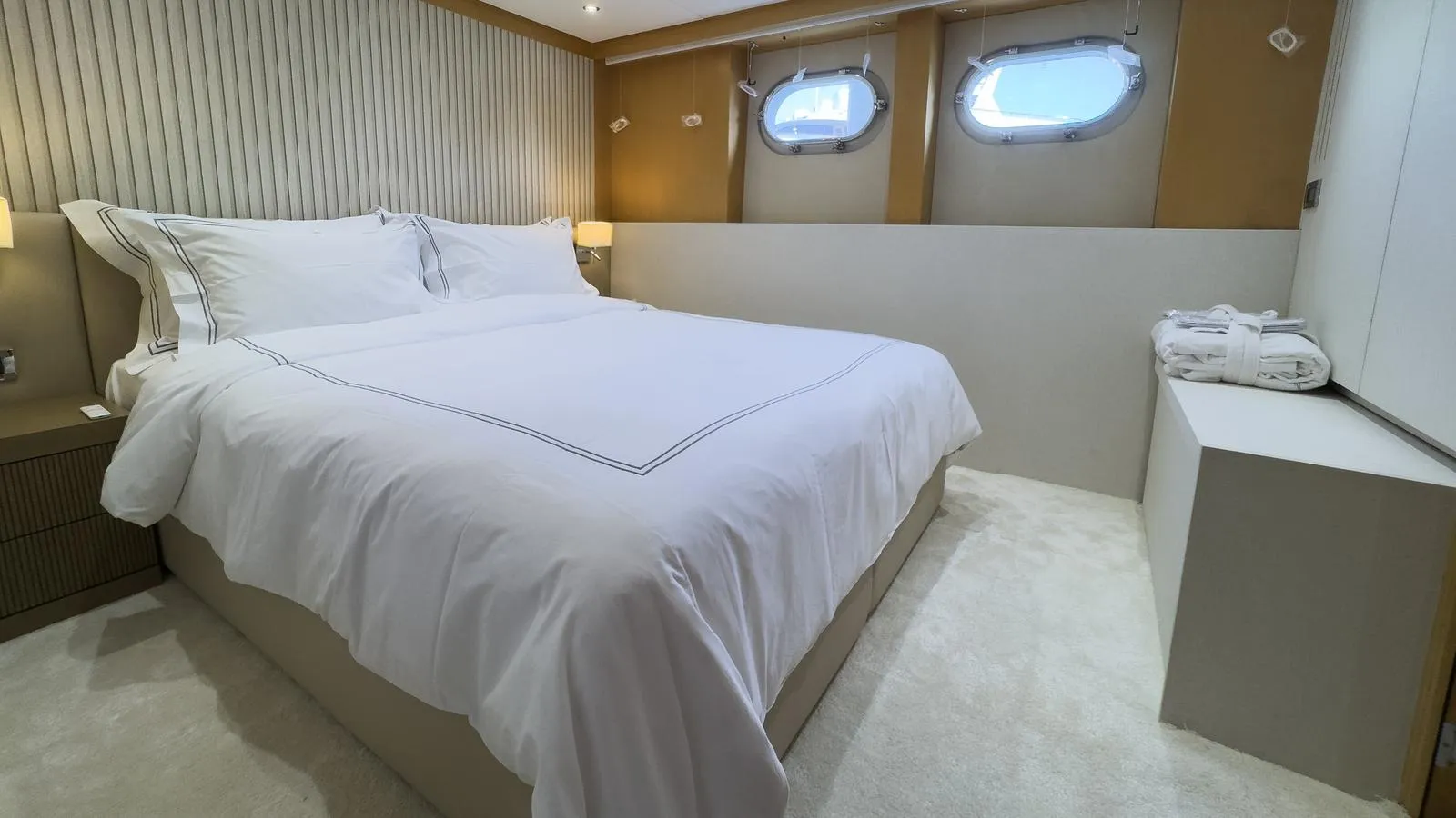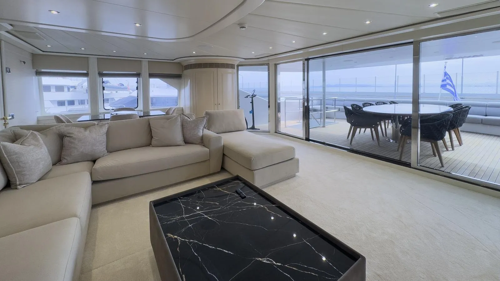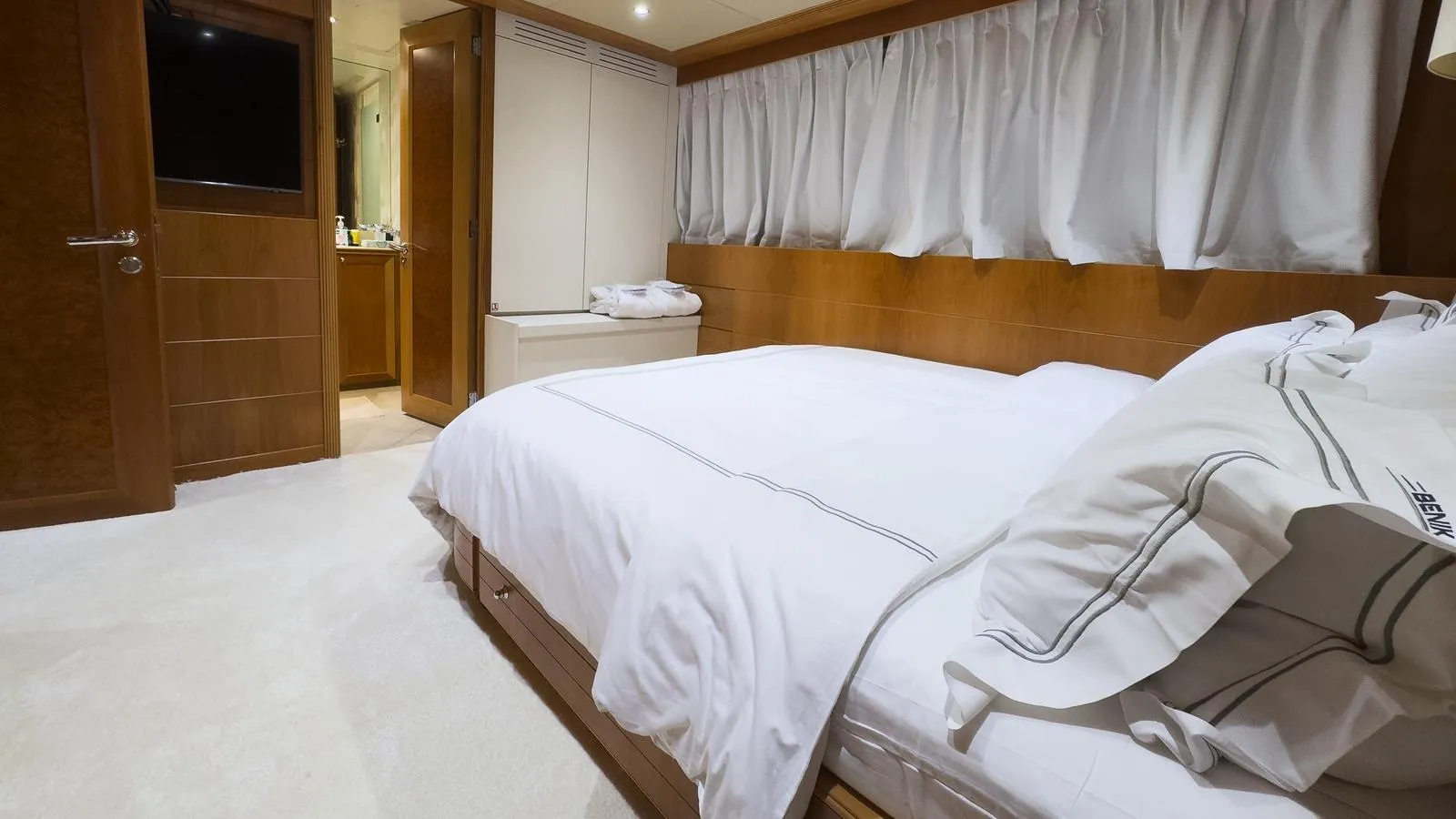 Designed by Omega Architects, her contemporary interior feels spacious thanks to an efficient layout and generous volume. Benik accommodates up to 16 guests in seven cabins, with crew quarters for eight.