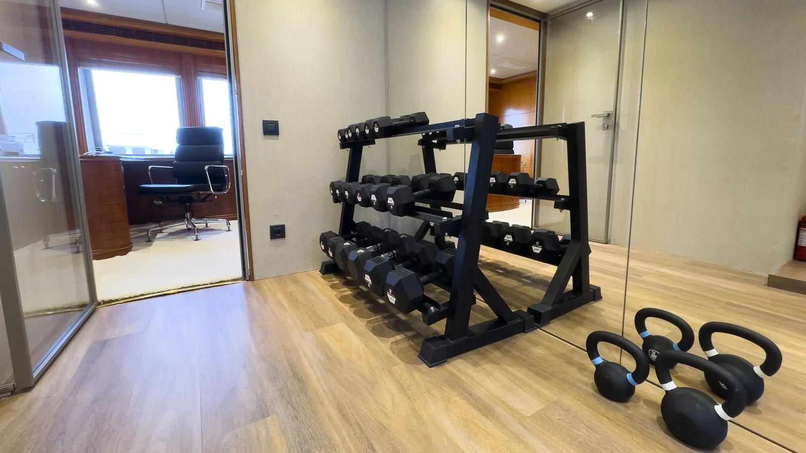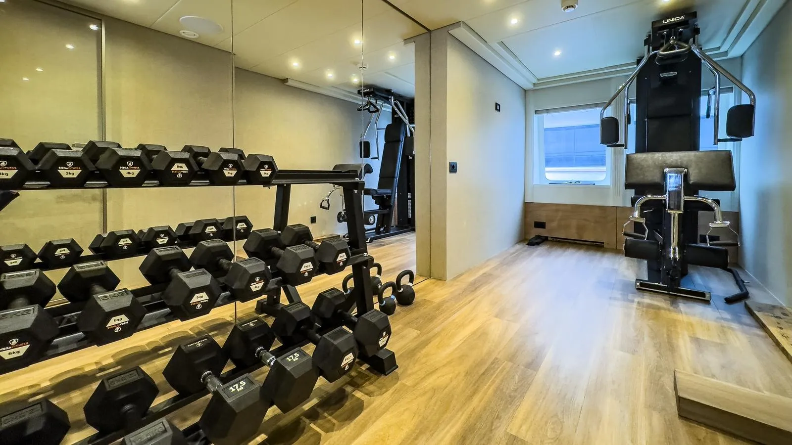 Outdoor areas include three alfresco dining spaces, an expansive sundeck with ample sunbathing areas, and a Jacuzzi. Additional amenities include a fully equipped gym and a state‑of‑the‑art entertainment system.