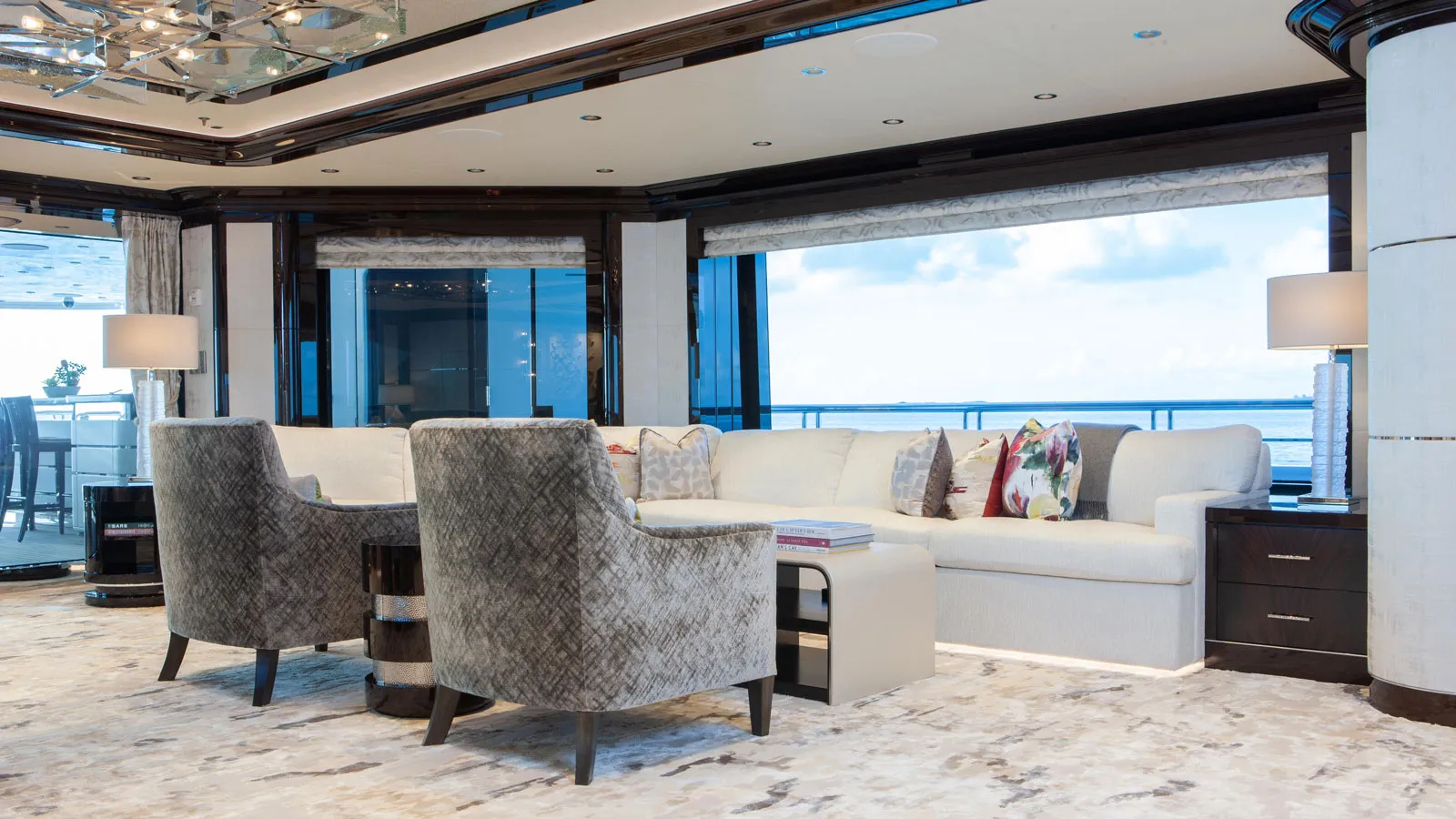 Boardwalk offers four expansive decks and a remarkable 1,848GT of interior space. Designed for comfort and sophistication, the interiors feature tactile textures, neutral tones, and subtle pops of color, complemented by impressive ceiling heights and varied lighting options.