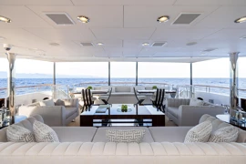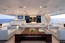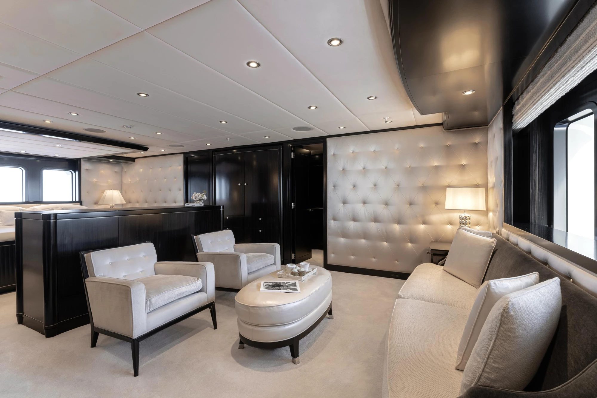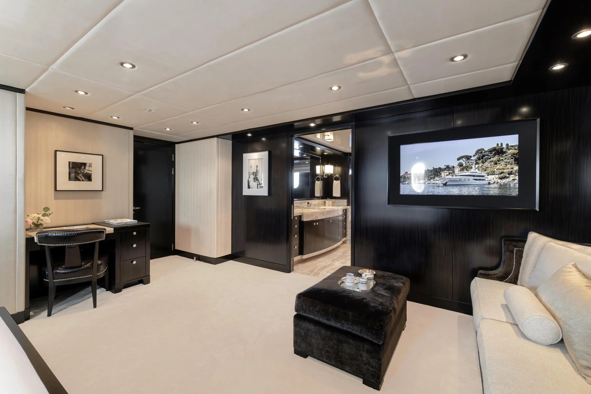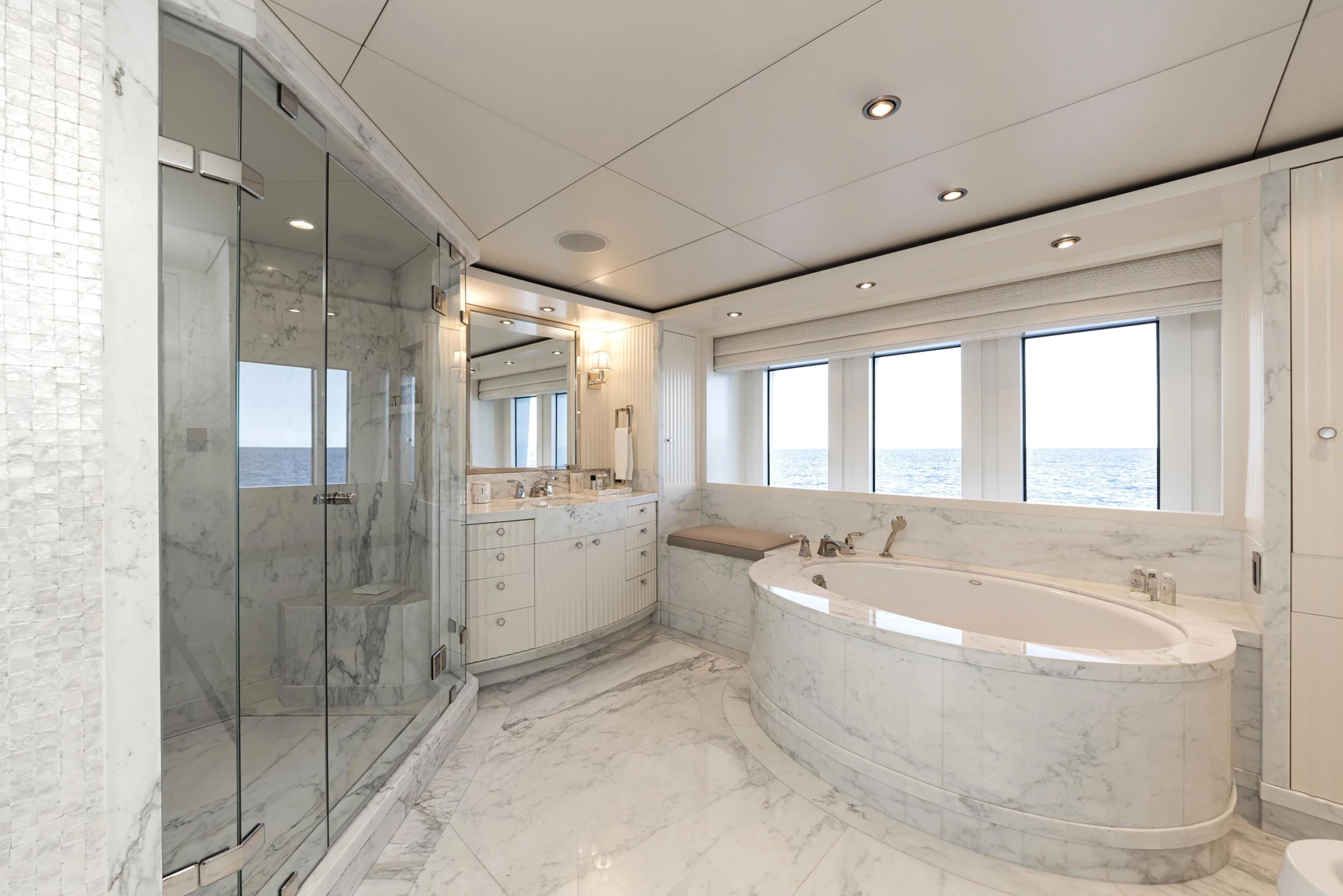CARPE DIEM accommodates twelve guests in six luxurious staterooms. The inviting full-beam master suite on the main deck includes a private study, lounge area, and “his and her” bathrooms. There are two full-beam VIP suites on the lower deck and two double guest staterooms, all with ensuite bathrooms. The forward VIP suite can be split into two separate staterooms, one double and one twin.