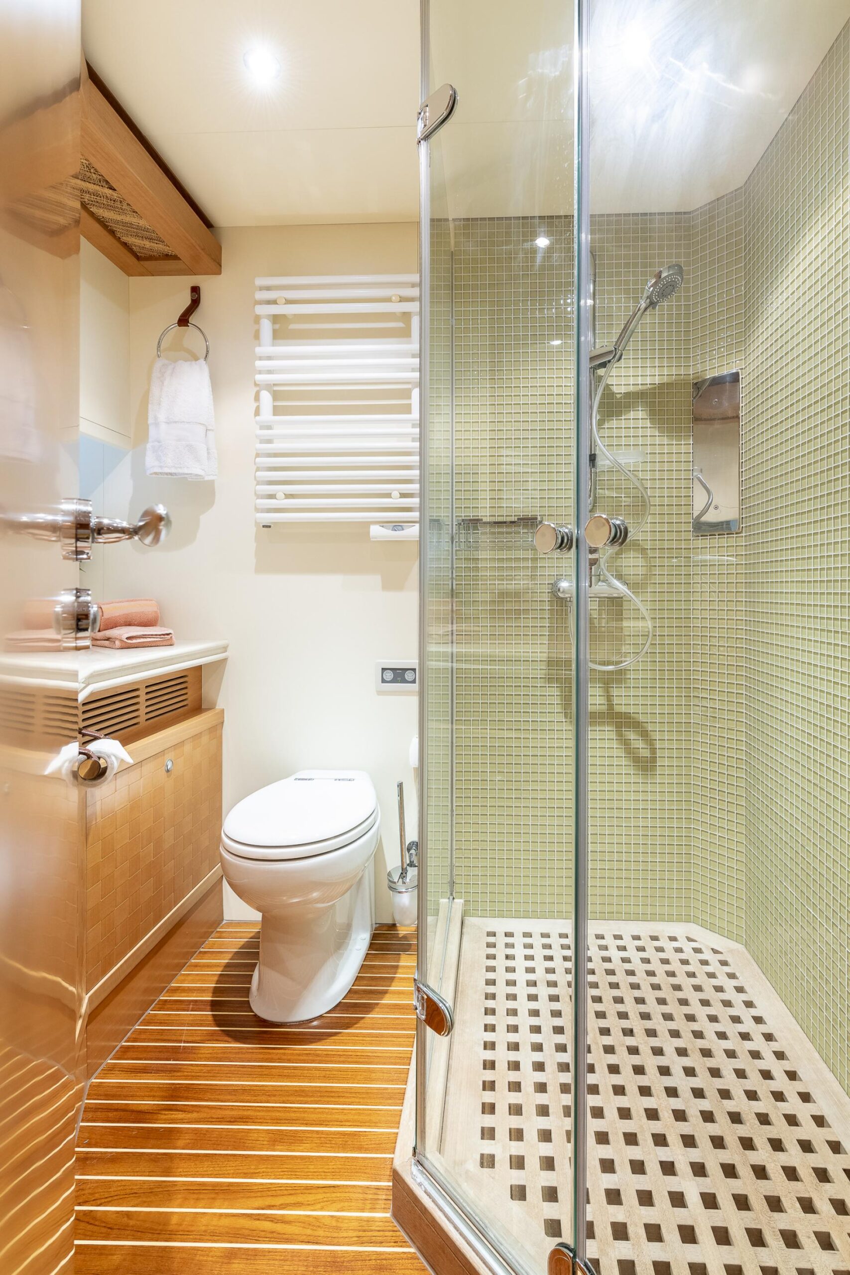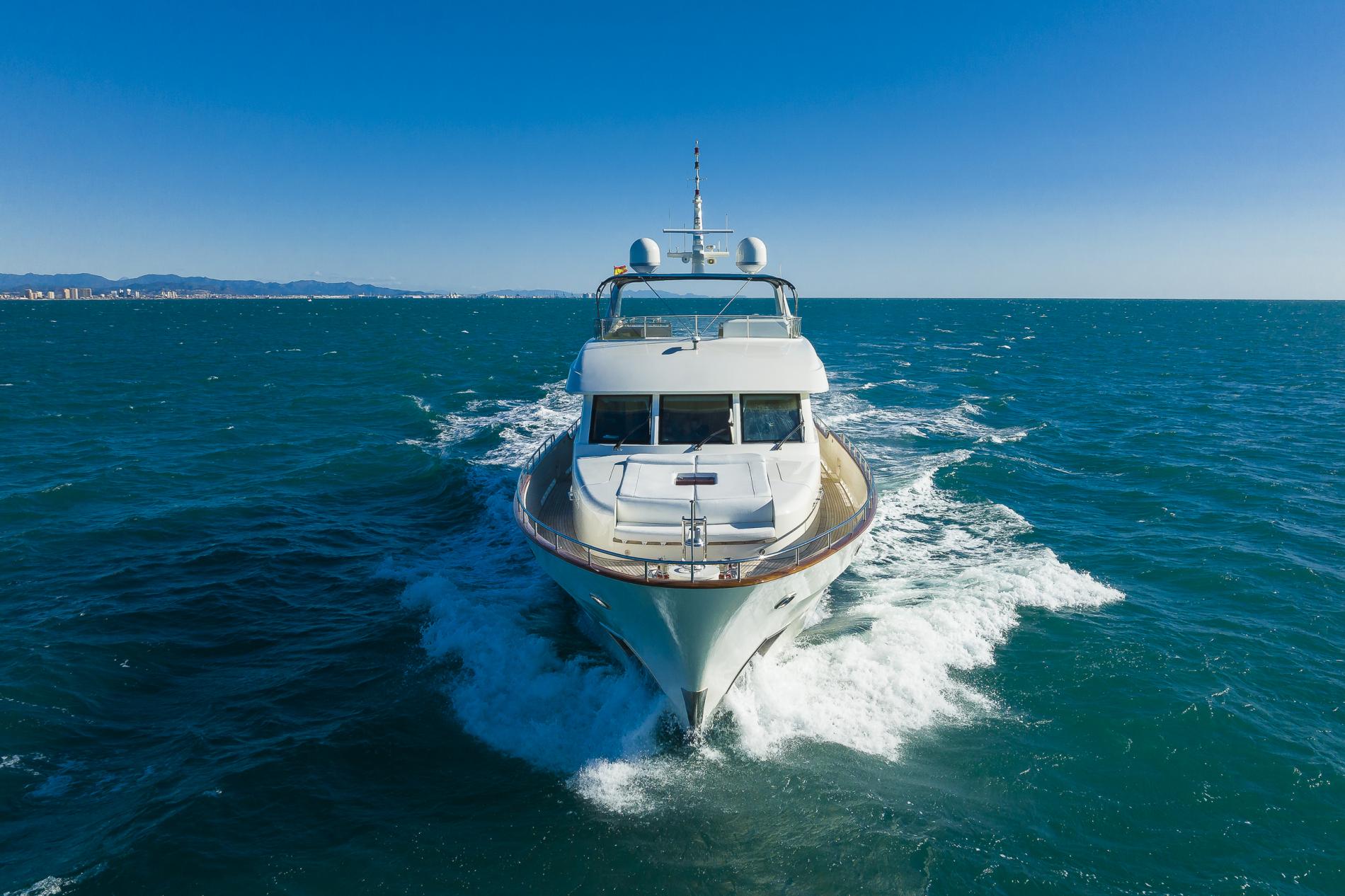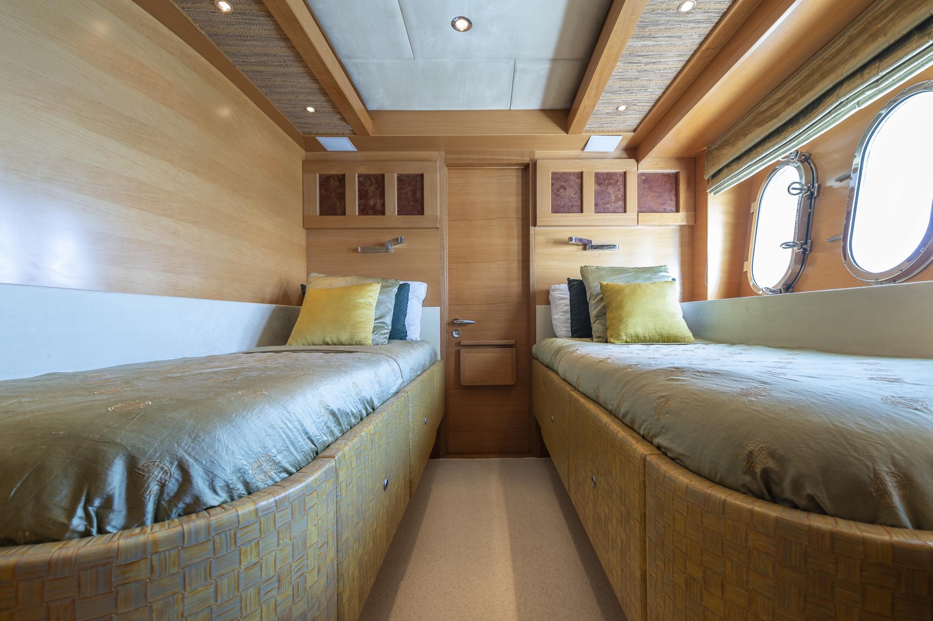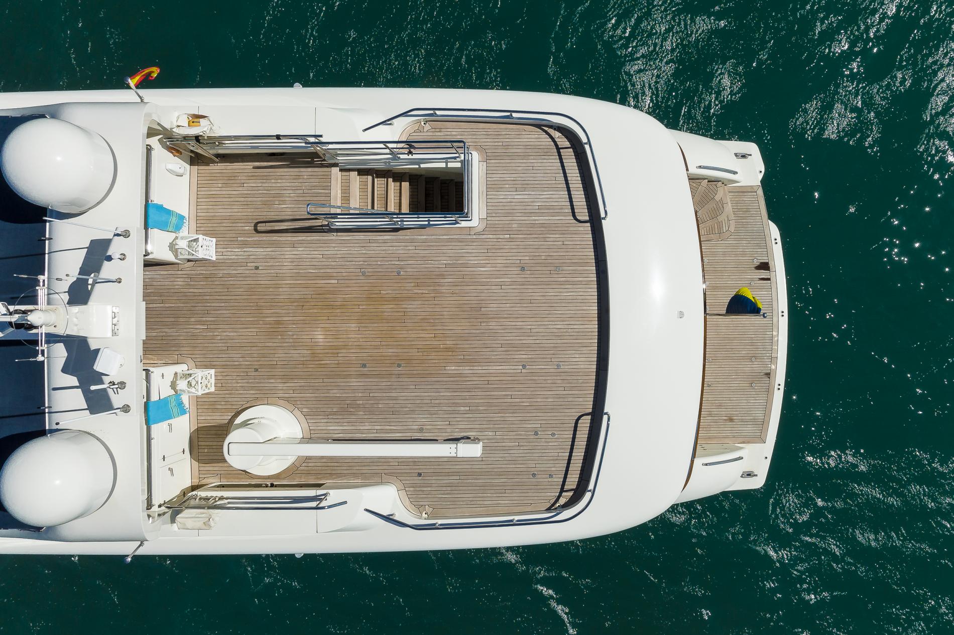 CIAO has a beam of 6.8m and a draft of 1.8m, allowing her to berth in the most shallow of ports and marinas, and making her particularly well suited to island hopping. With her elegant exterior lines—constructed in lightweight alloy Sealium, and recently repainted a sleek oyster white—she cuts a fine figure whether at berth or sea, particularly with her inlaid teak decking.