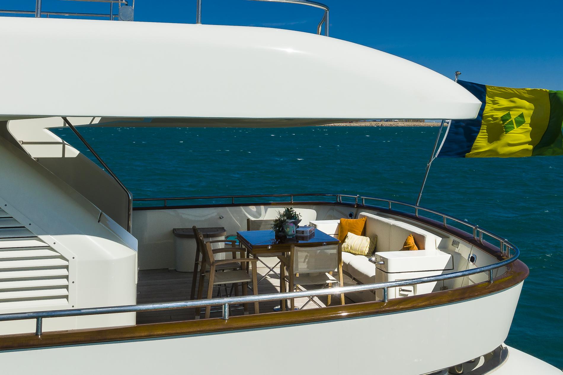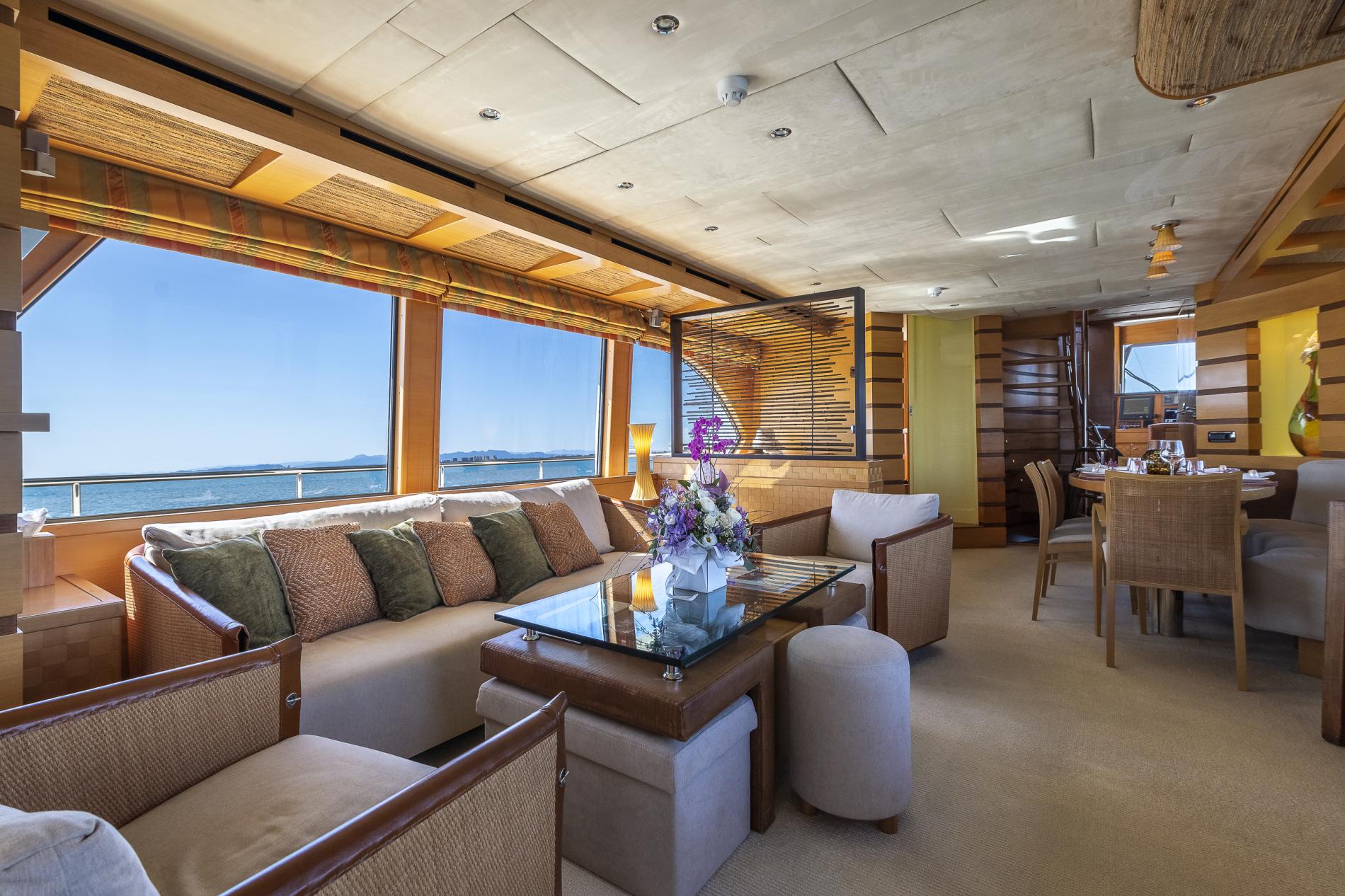 It’s important to note that she was the first in Moonen’s Fast Series of Yacht (model Alu 94), custom-built for the shipyard’s owner, who wanted speed without sacrificing comfort, and a range extending beyond the shores of the Mediterranean. Consequently, she can reach a top speed of 18/22 knots with a range of 2,000 nautical miles at her cruising speed of 10 knots. For her pioneering design, she won the prestigious Trophée de l’Inovation for custom yachts under 40m at the 2007 World Yachts Trophies.