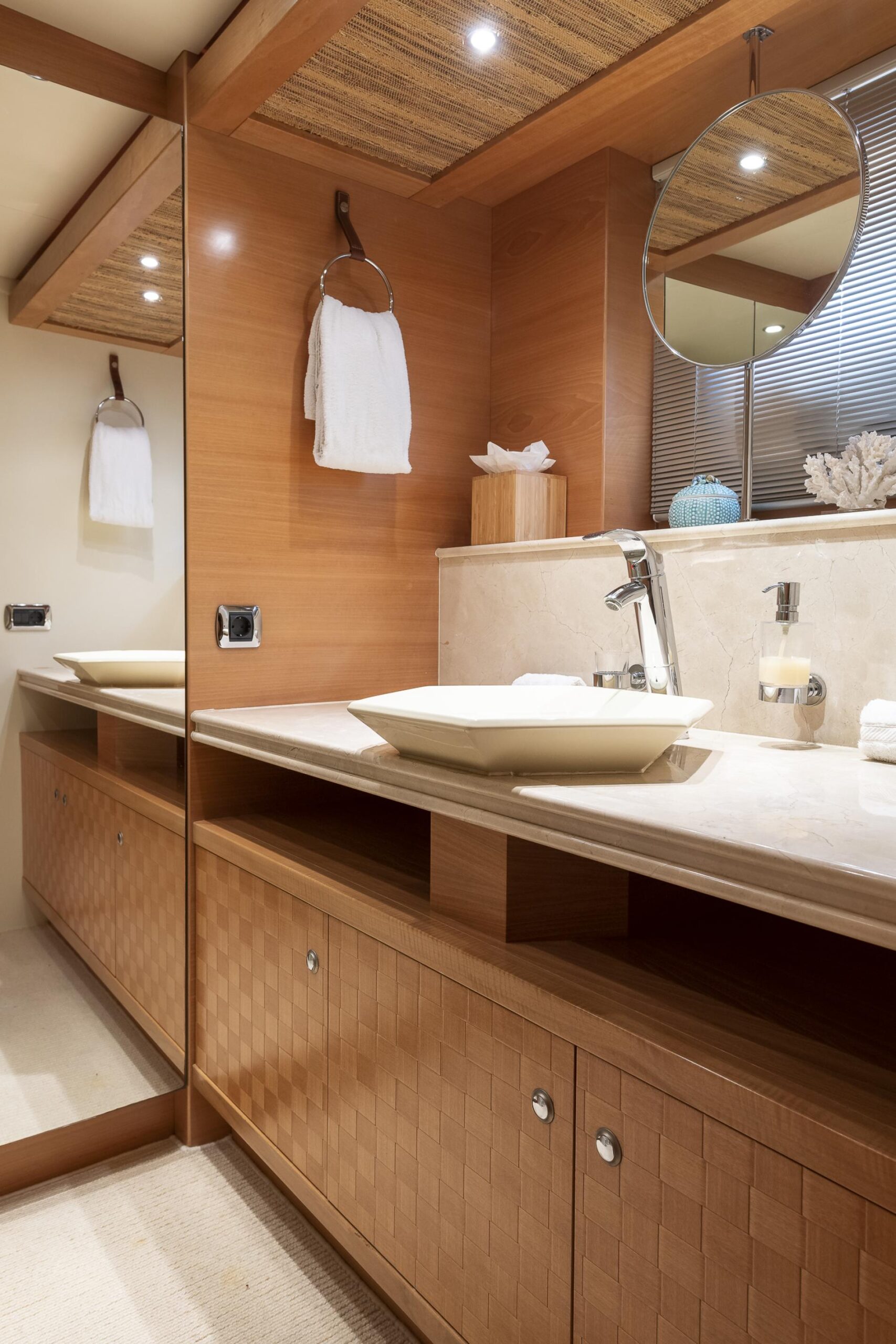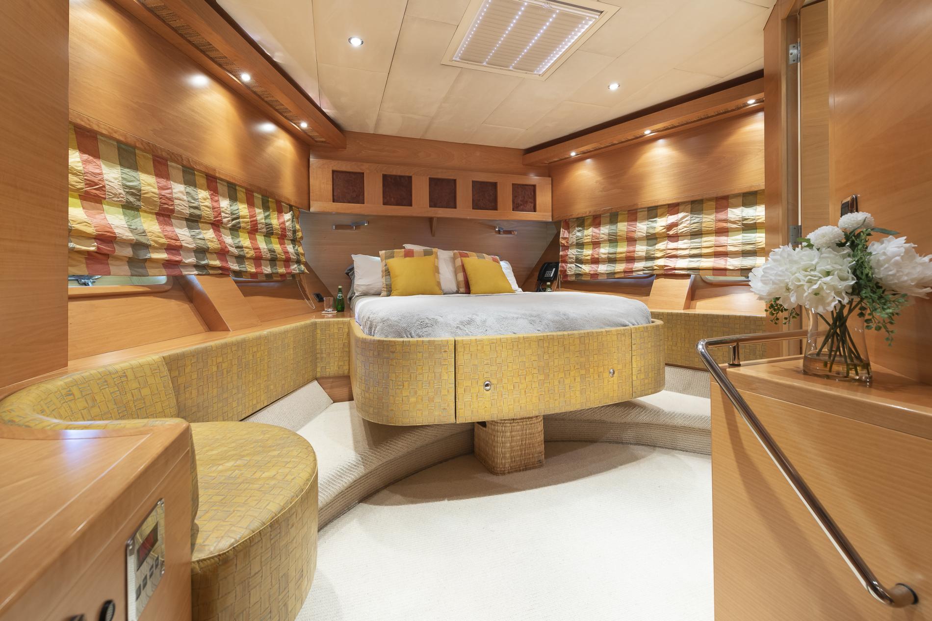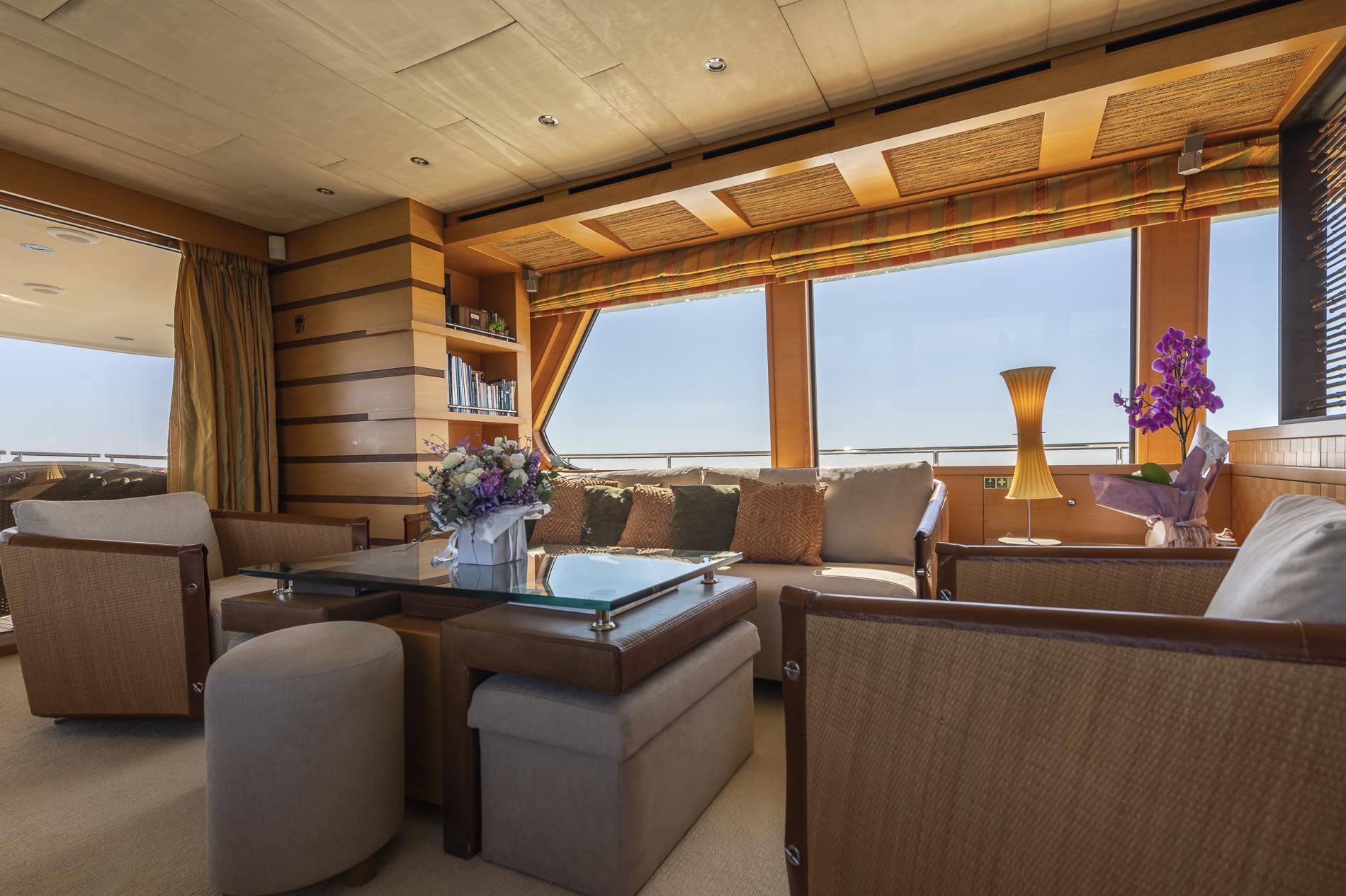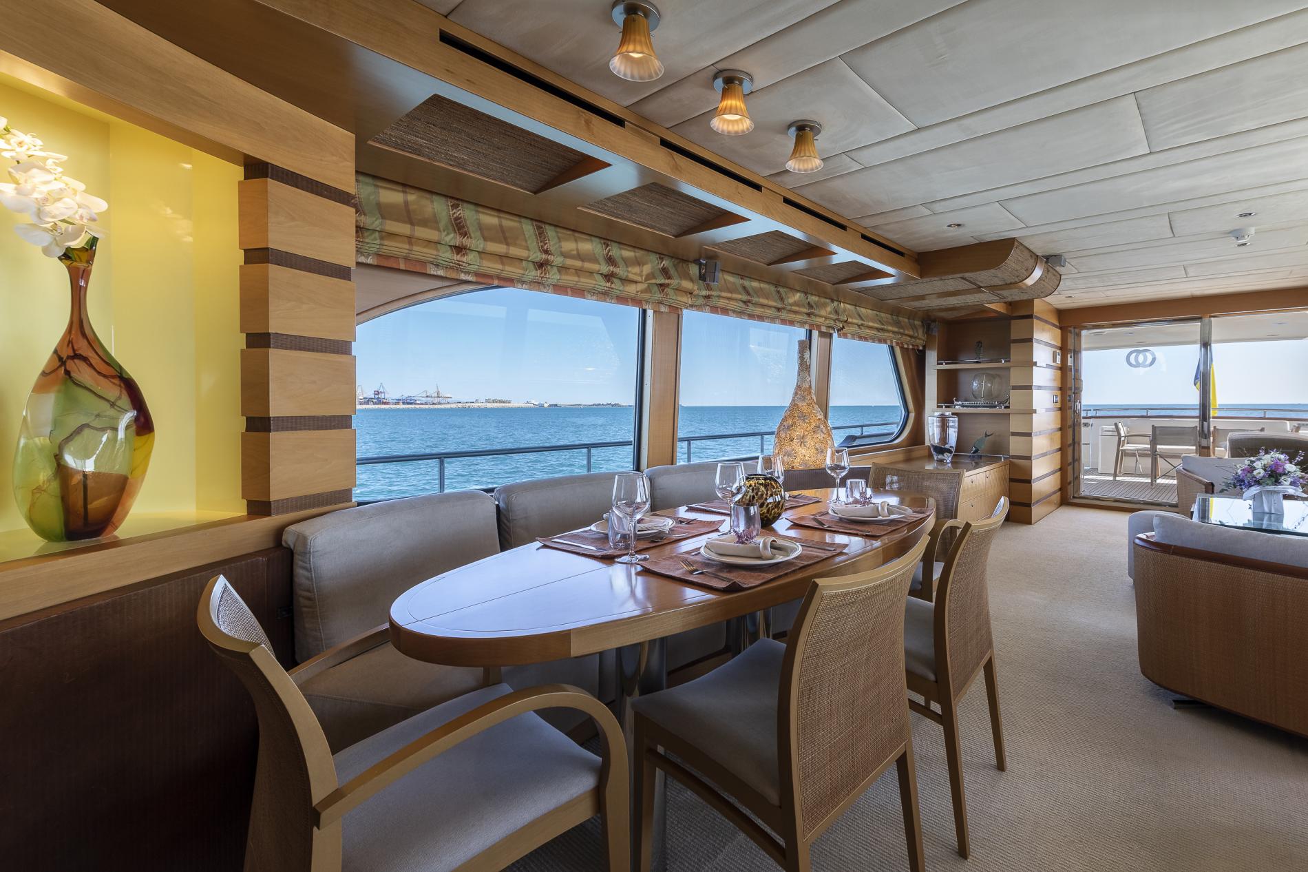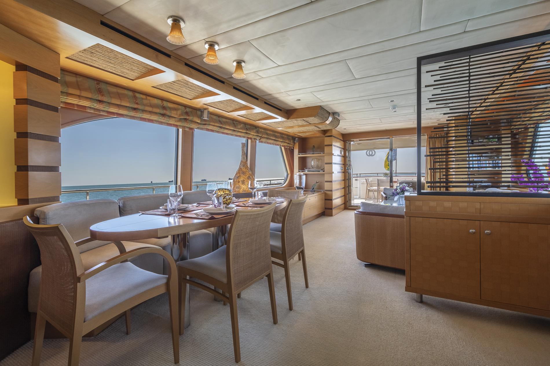 Her interior details were designed by Art-Line Interiors, another award-winning design studio based out of the Netherlands. She features warm silk-sprayed wood combined with sunny upholstery—it’s always summer aboard CIAO! Other fine finishes include cream marble, teak and holly flooring, and painted details throughout.