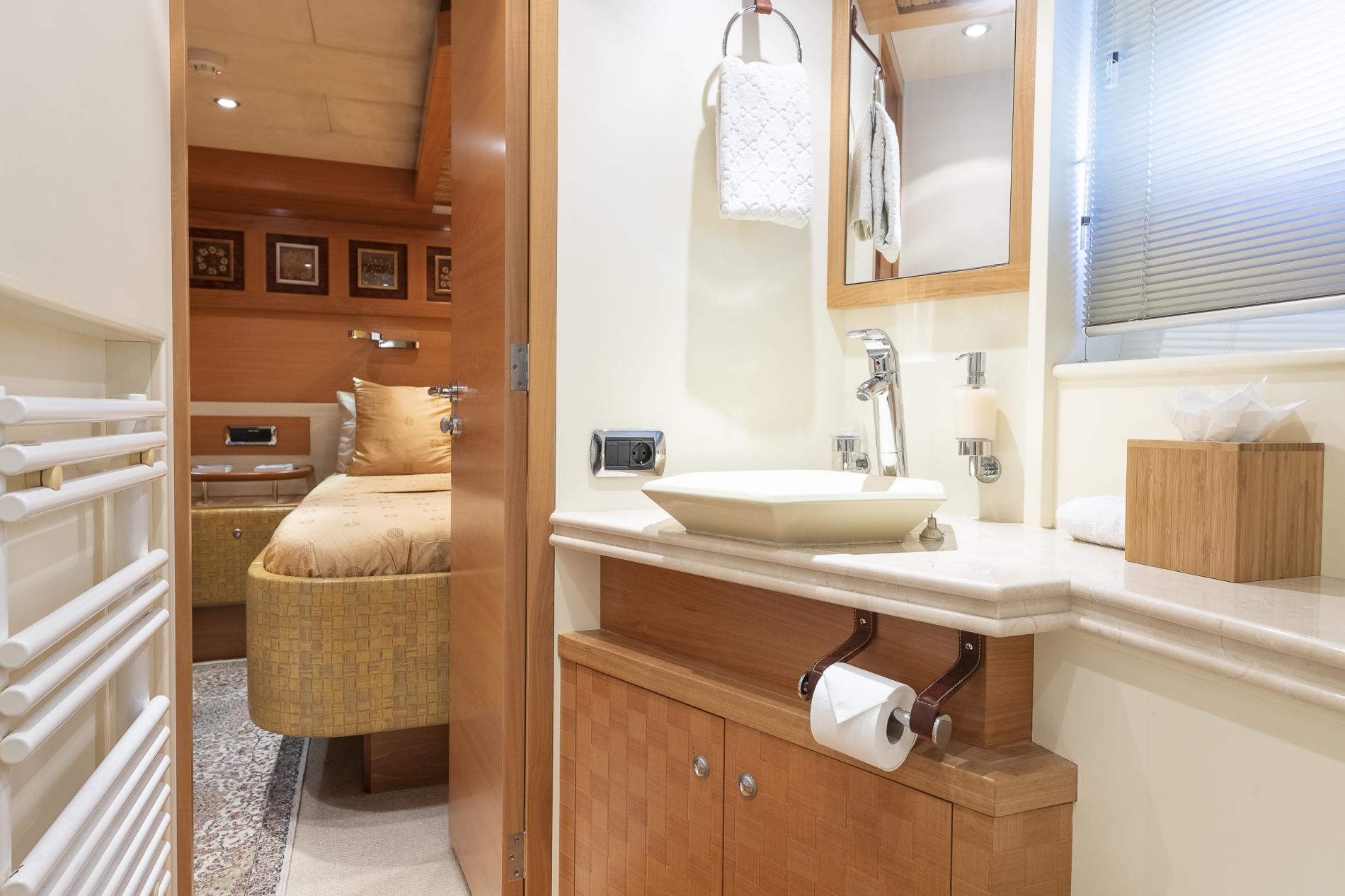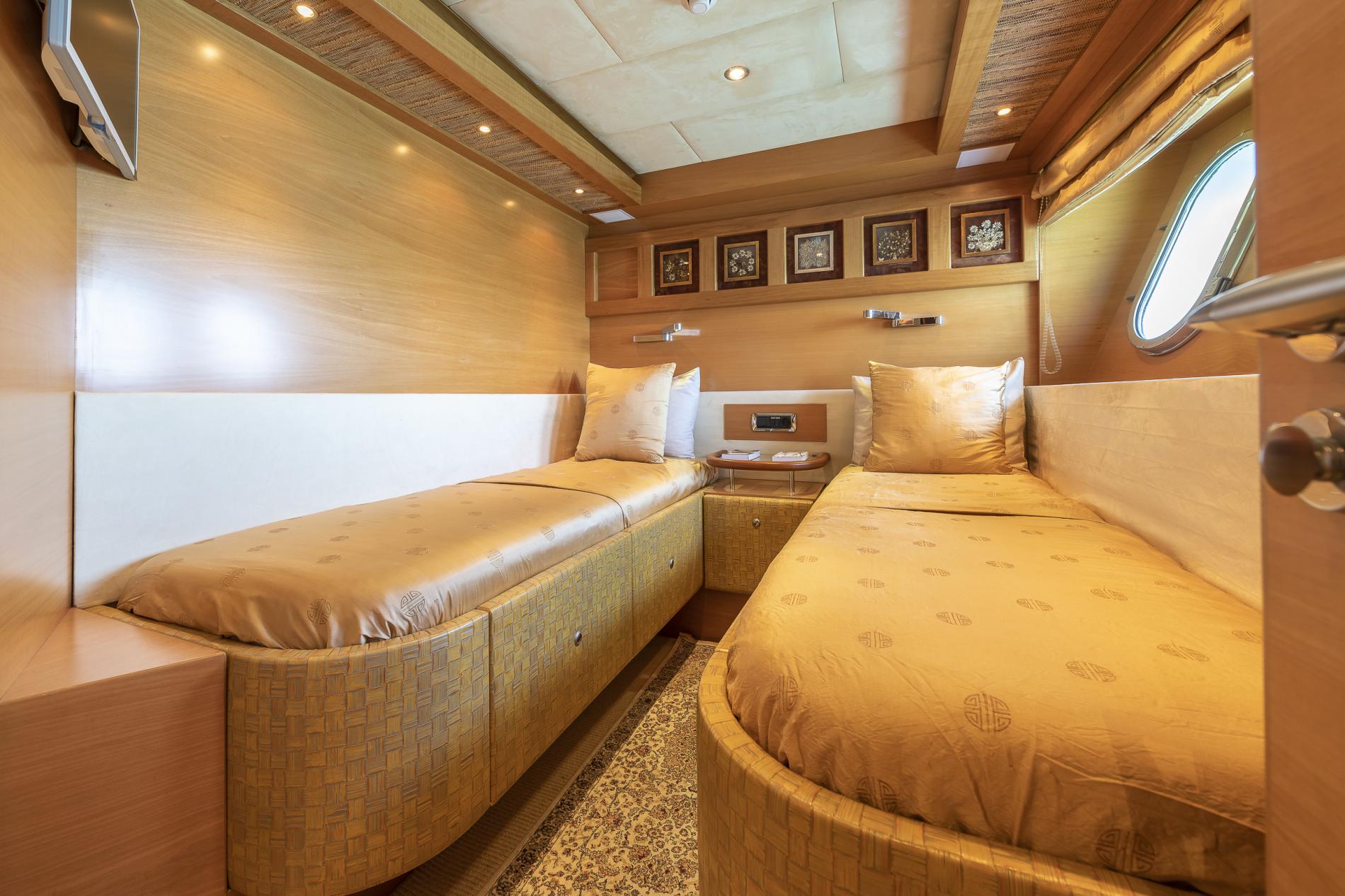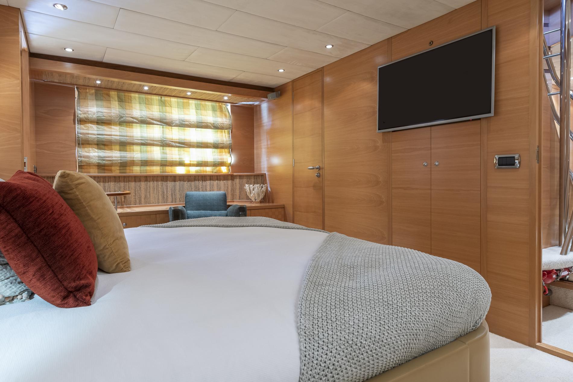 She can comfortably accommodate eight guests across one full-beam master suite, one VIP suite, and two guest cabins, as well as four crew across two cabins. She comes with an AB17 DLX RIB with 115HP Yamaha outboard, an 11’ GT Marine crew tender with 20HP Tohatsu outboard, and a Bauer Junior II diving compressor.