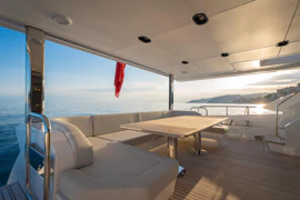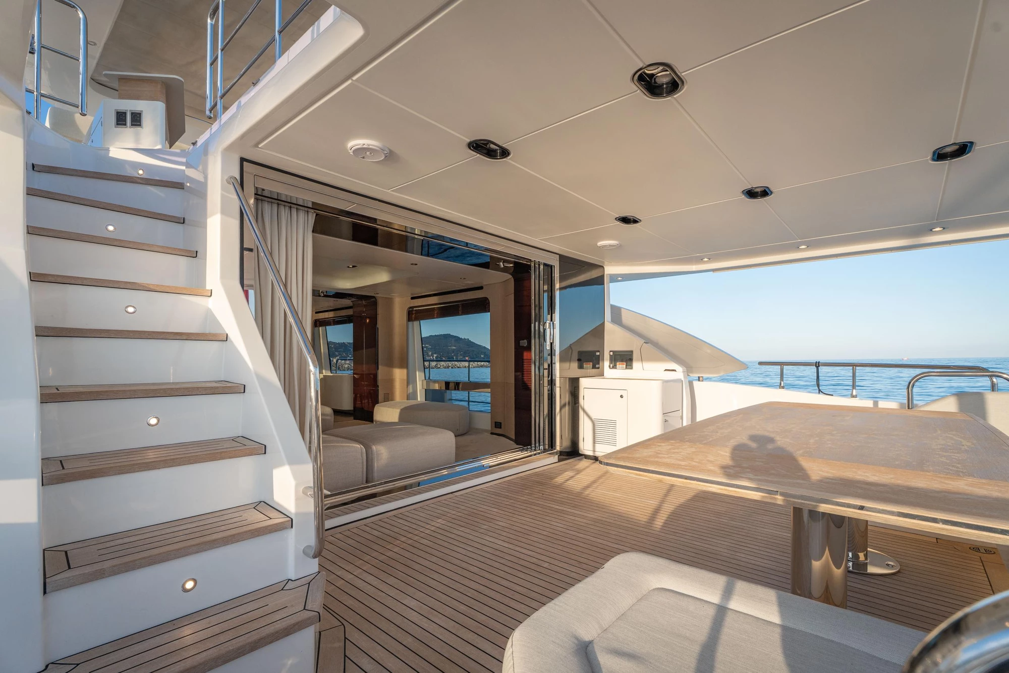 - Expansive outdoor areas: Flybridge and sundeck with bar, lounge, and sunbathing options