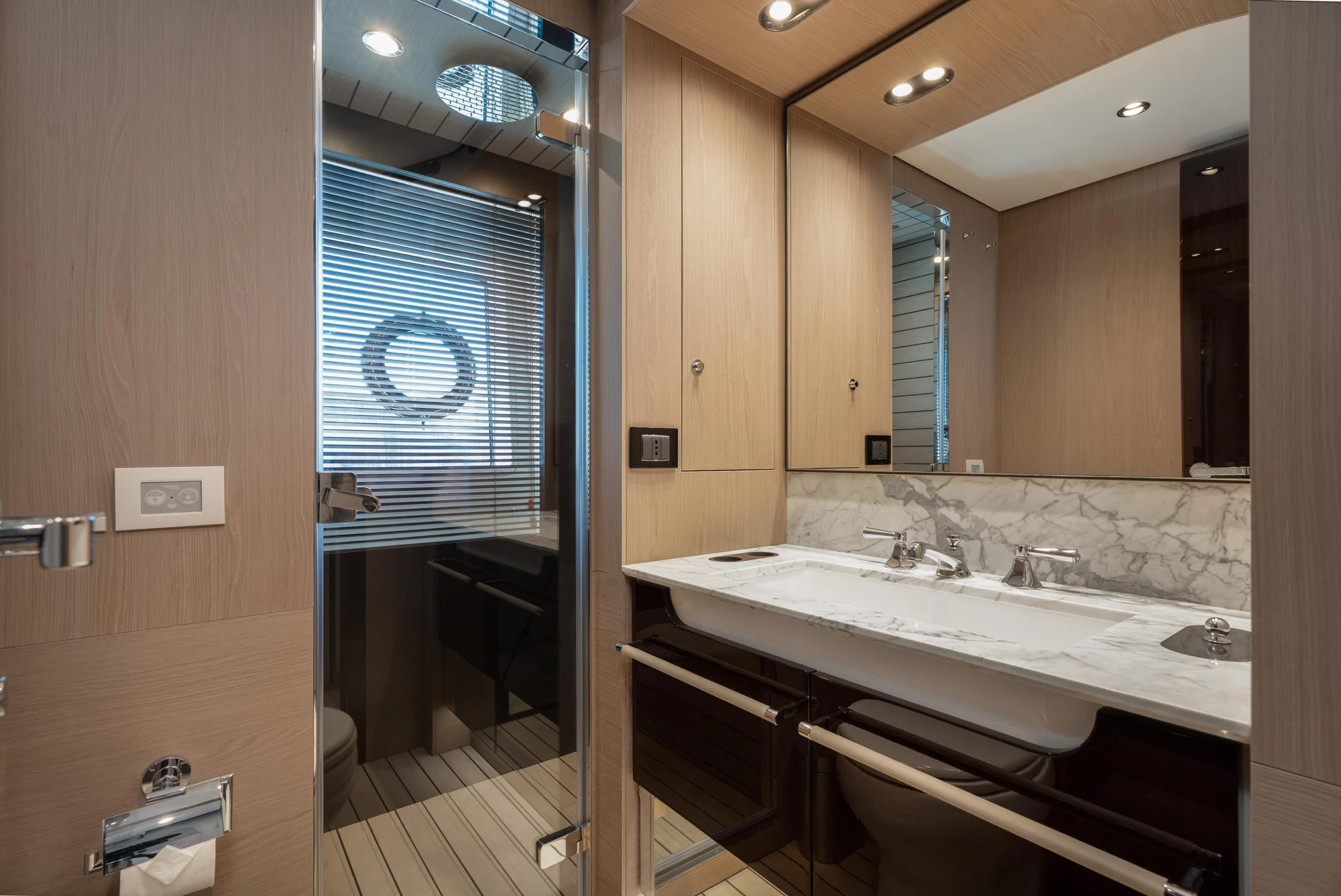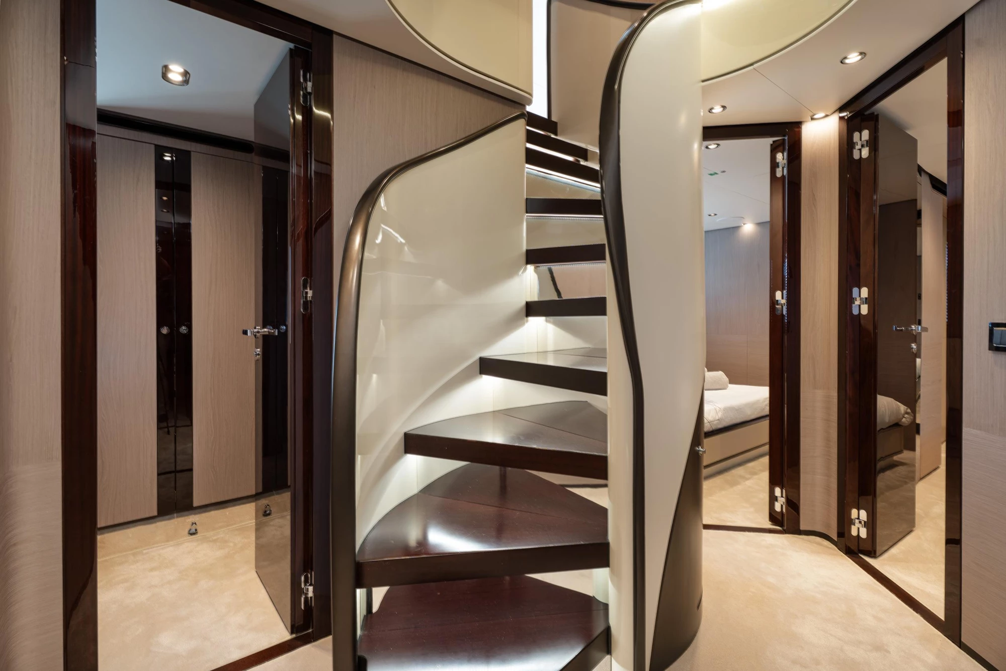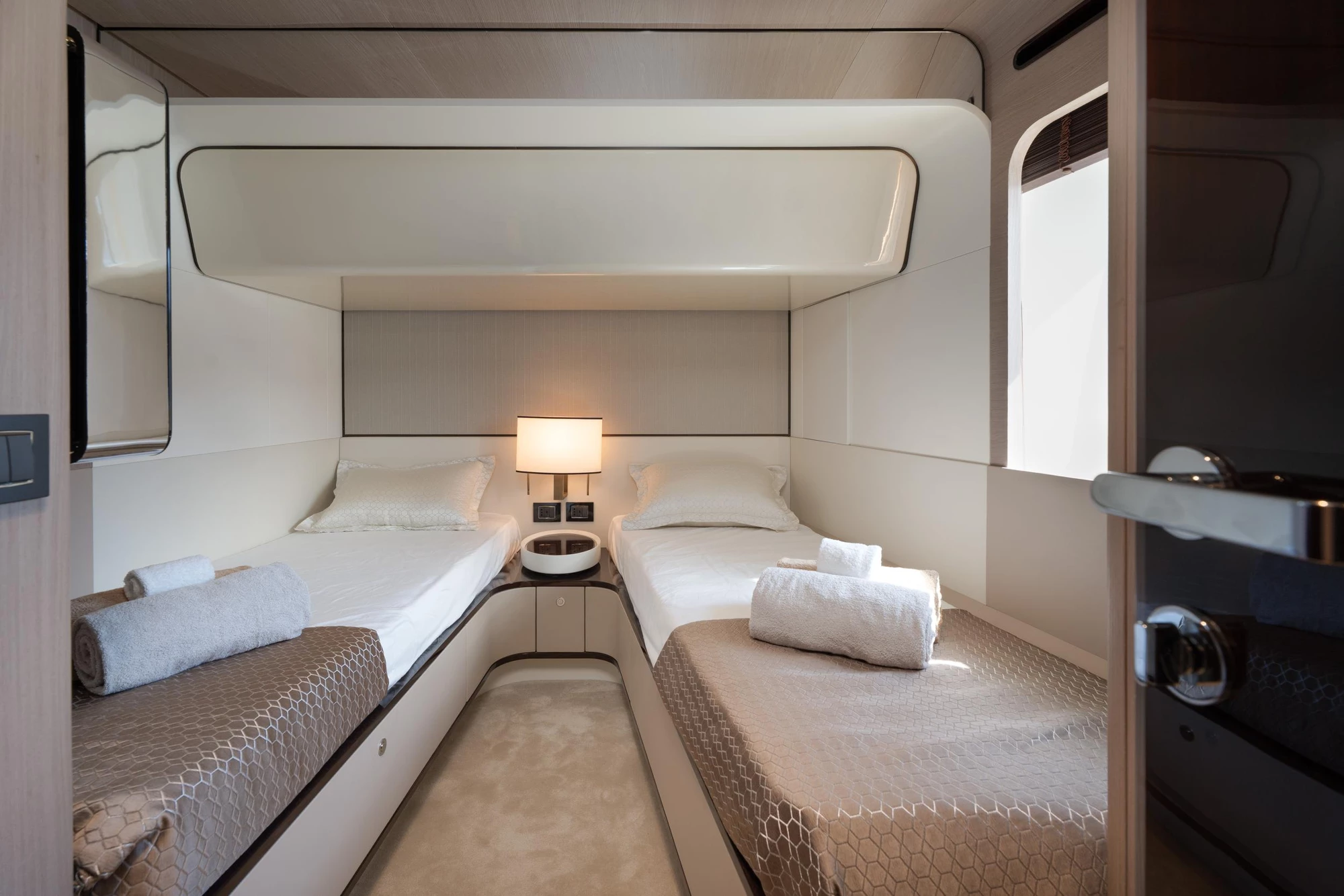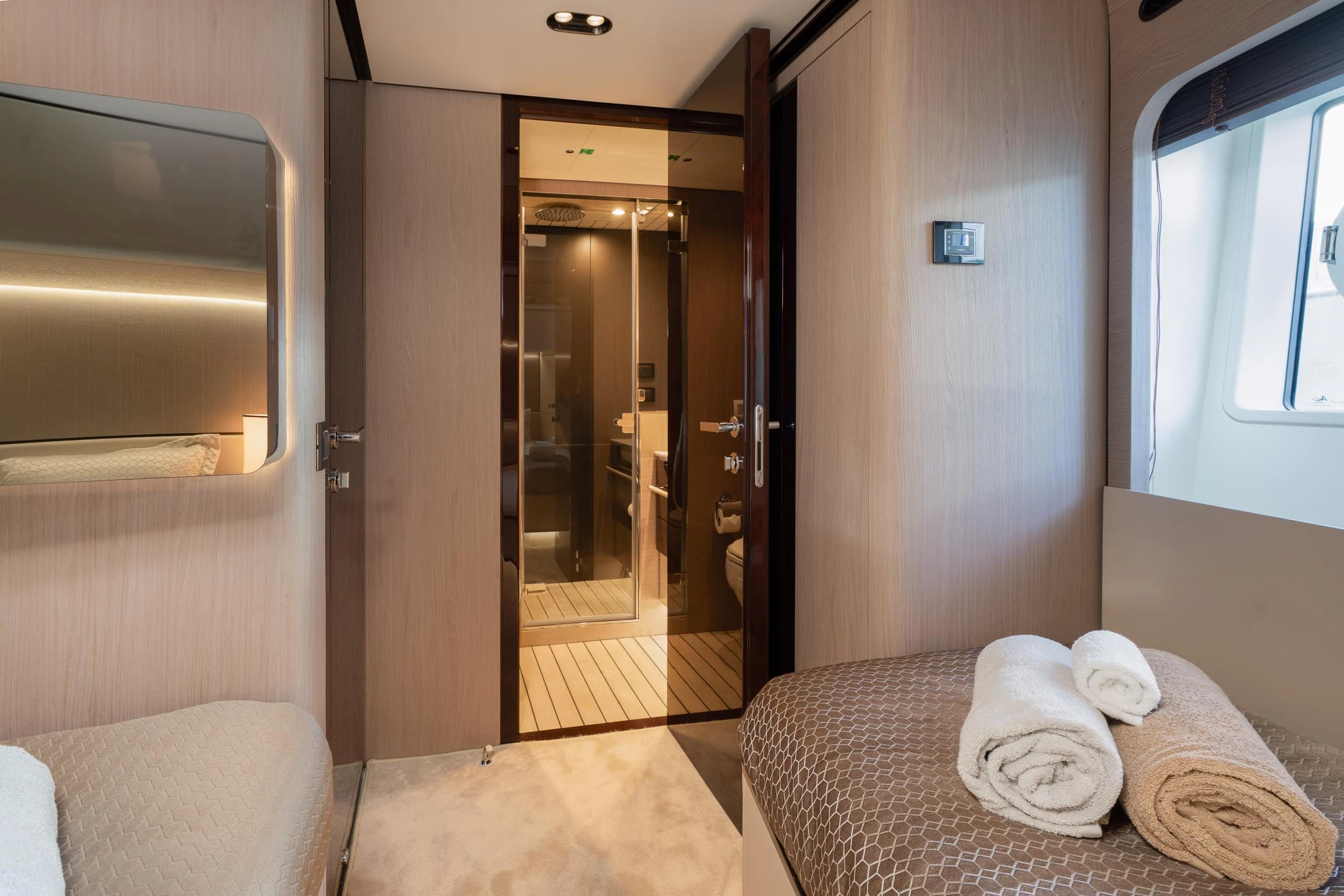 DABMAR stands out for its smart layout. The full-beam Owner’s suite sits forward on the main deck, offering exceptional privacy and panoramic views. Four versatile guest staterooms on the lower deck accommodate up to 10 guests in total comfort.