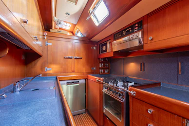 - Carbon mast and boom with cutter configuration and hydraulic furlers for offshore performance and easy handling.