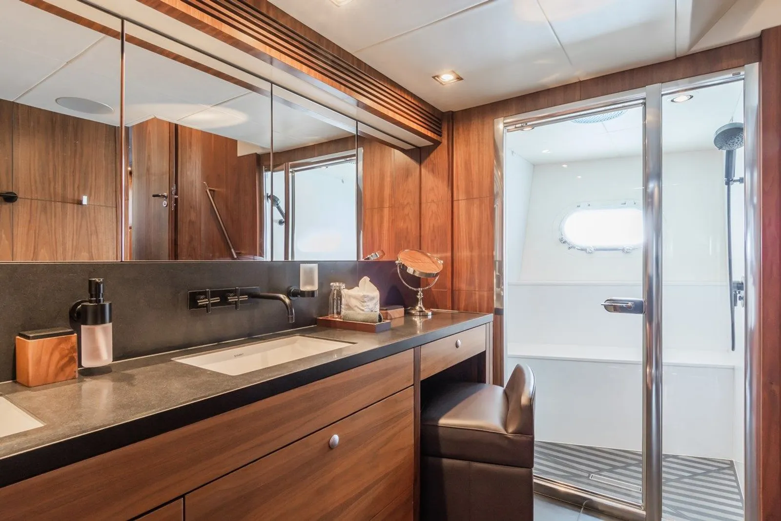 Built in 2014 by Sunseeker and presented in pristine condition, this tri-deck motor yacht is one of only 14 Sunseeker 40M hulls ever built, offering a rare opportunity to acquire a proven and highly sought-after model. With an impressive 338 GT, she delivers exceptional interior volume and a layout that continues to set the benchmark in her class. Constructed to RINA Class standards with a GRP hull and superstructure, the yacht boasts a raised pilothouse design and an exceptionally high specification throughout. Exterior highlights include a sundeck with dining and Jacuzzi, a hydraulic swim platform, tender garage, and a main-deck fold-out balcony that enhances indoor-outdoor living. Zero-speed and underway stabilizers, combined with an Atlas Frequency Converter, ensure outstanding comfort.