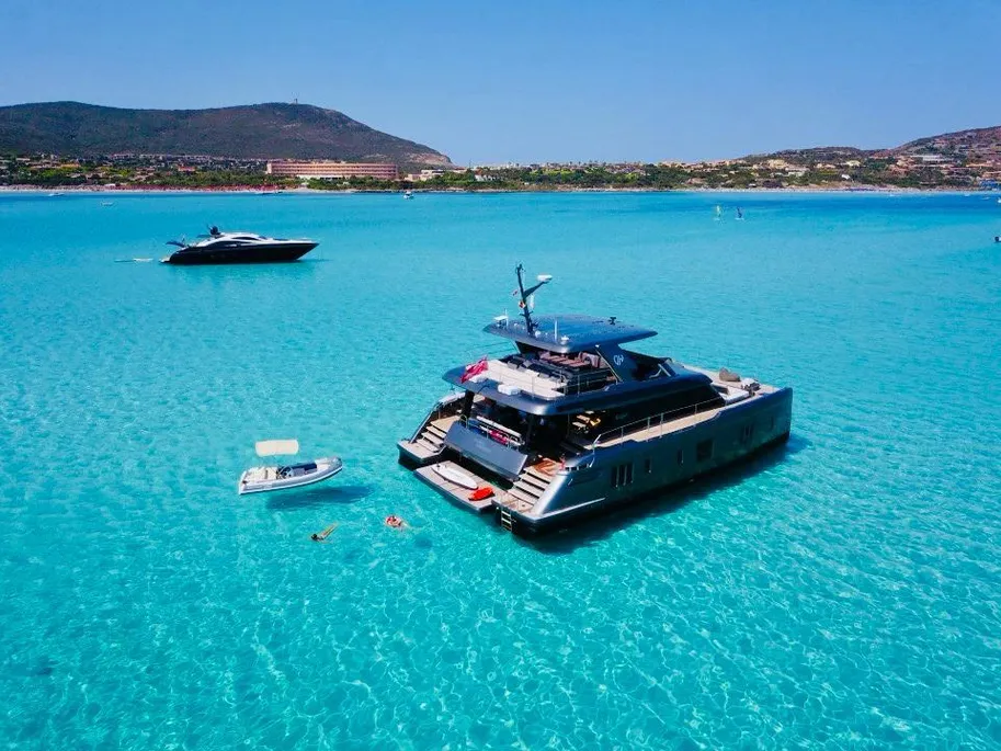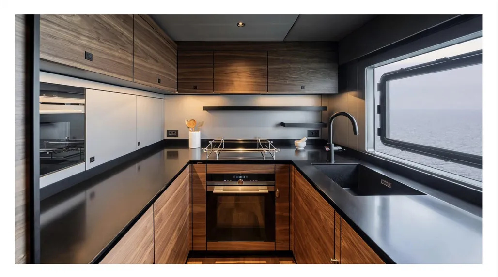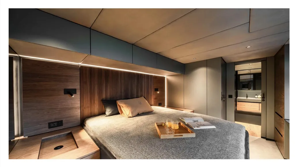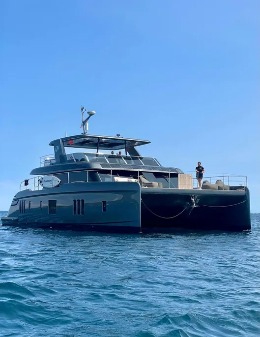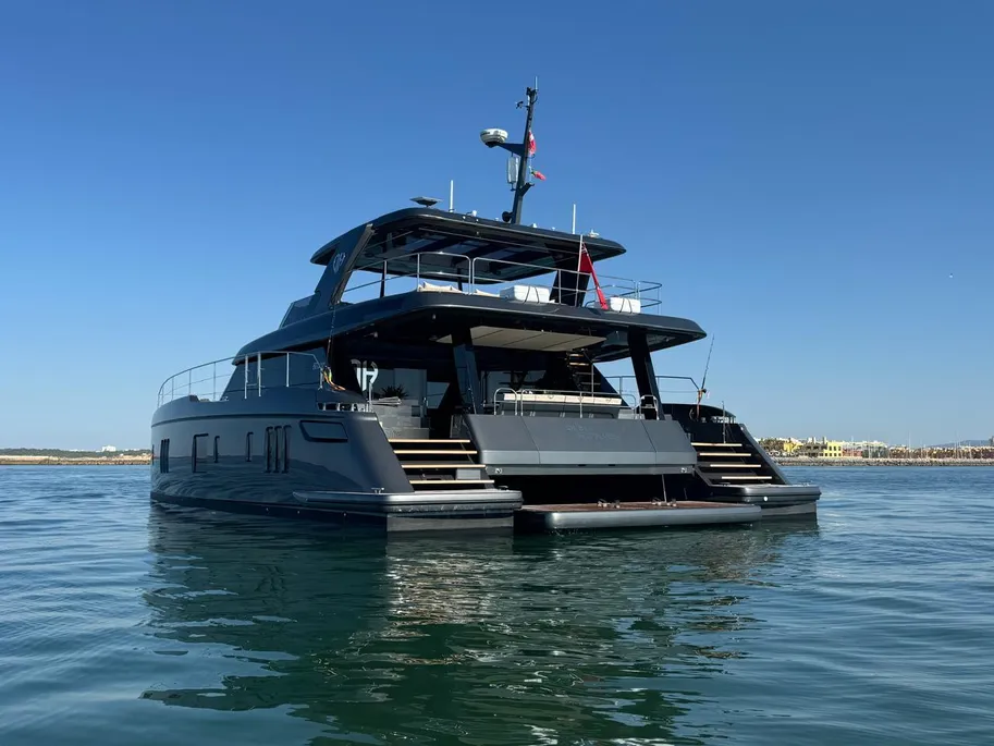 Crafted for long-distance cruising, the composite hull and 10.7m beam deliver transoceanic stability and power, thanks to twin 120 kW electric motors. Extended voyages are a breeze with 2x 5000L fuel tanks and 800L of fresh water, while the state-of-the-art energy system—including a 330 kWh battery bank, 5.8 kWp solar panels, and 150 kW marine generator sets—keeps you cruising in style and sustainability.