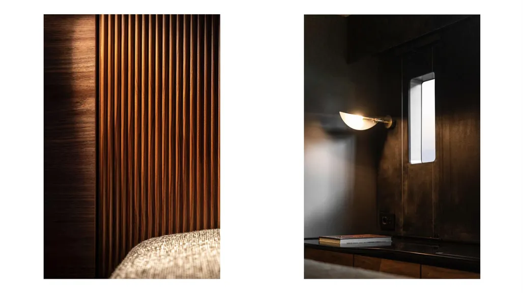 • Electrically operated recessed plissé blinds in the saloon