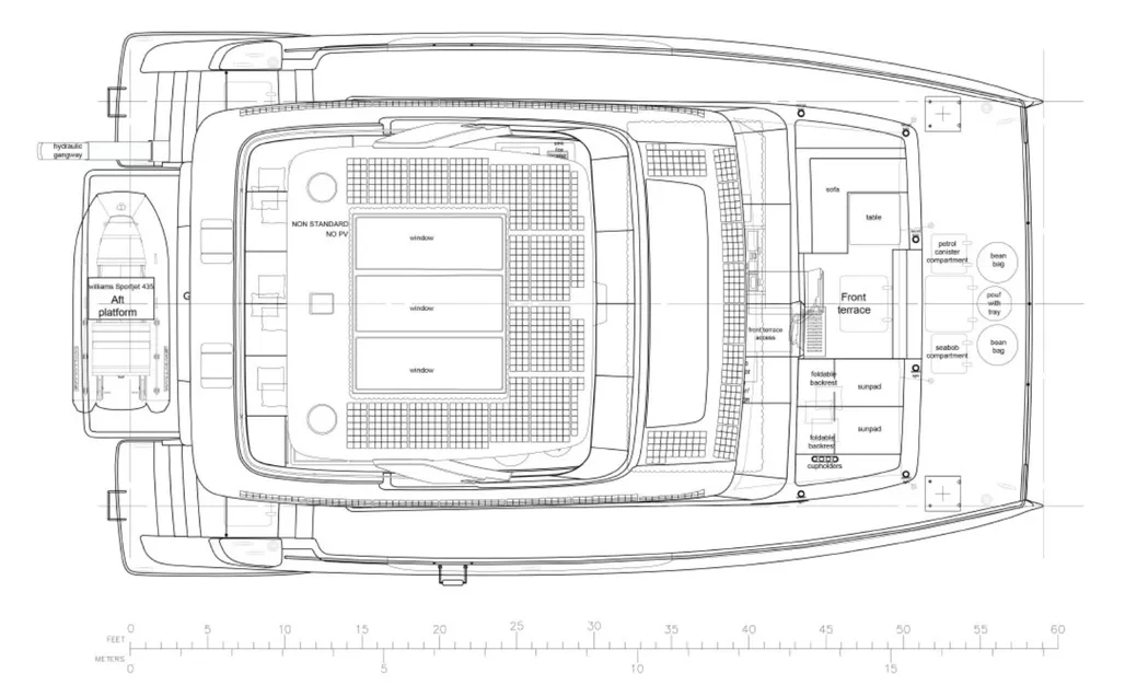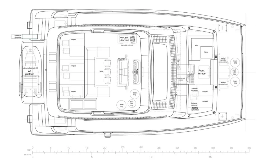 • Flybridge and main deck sunpad areas