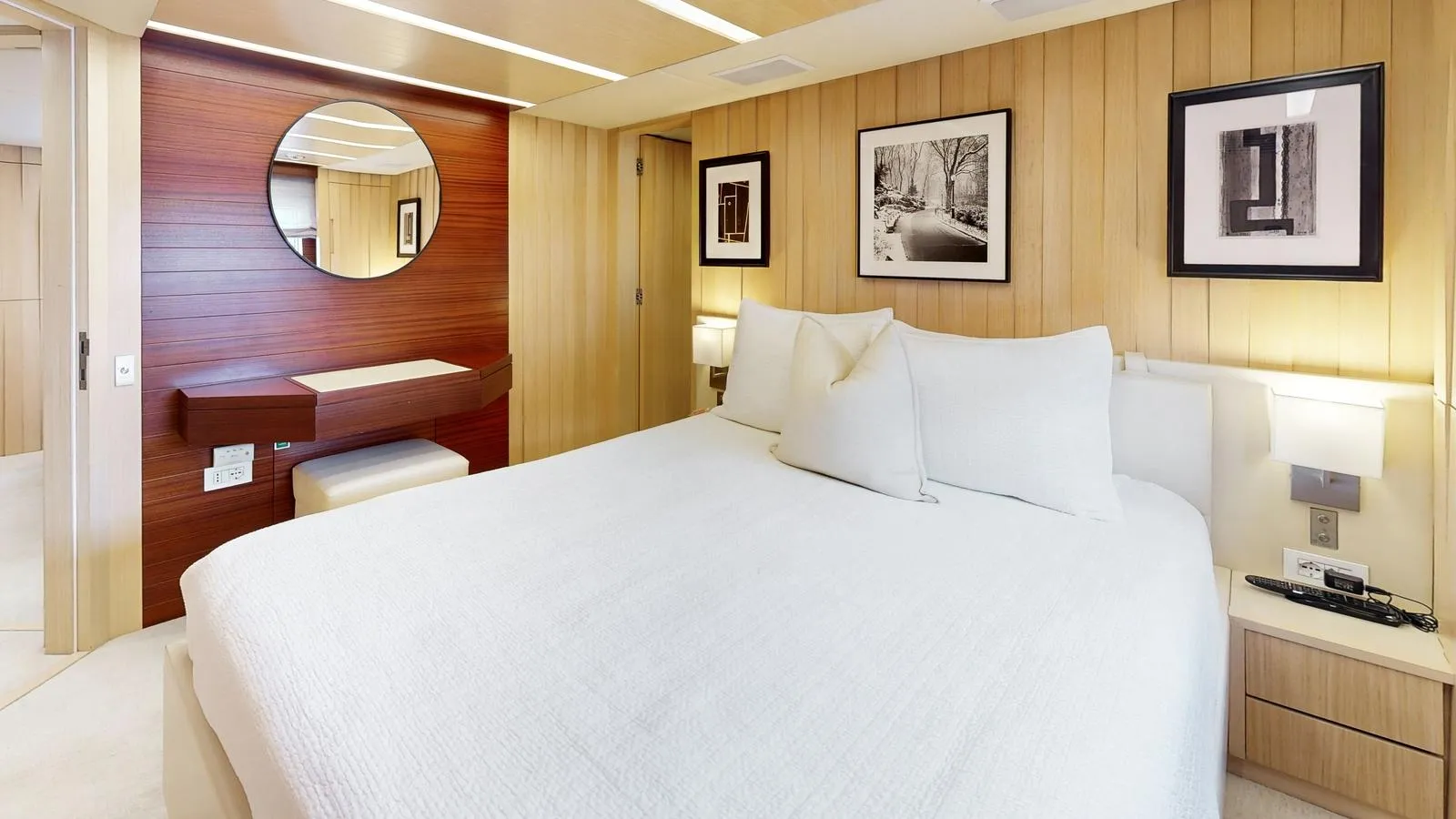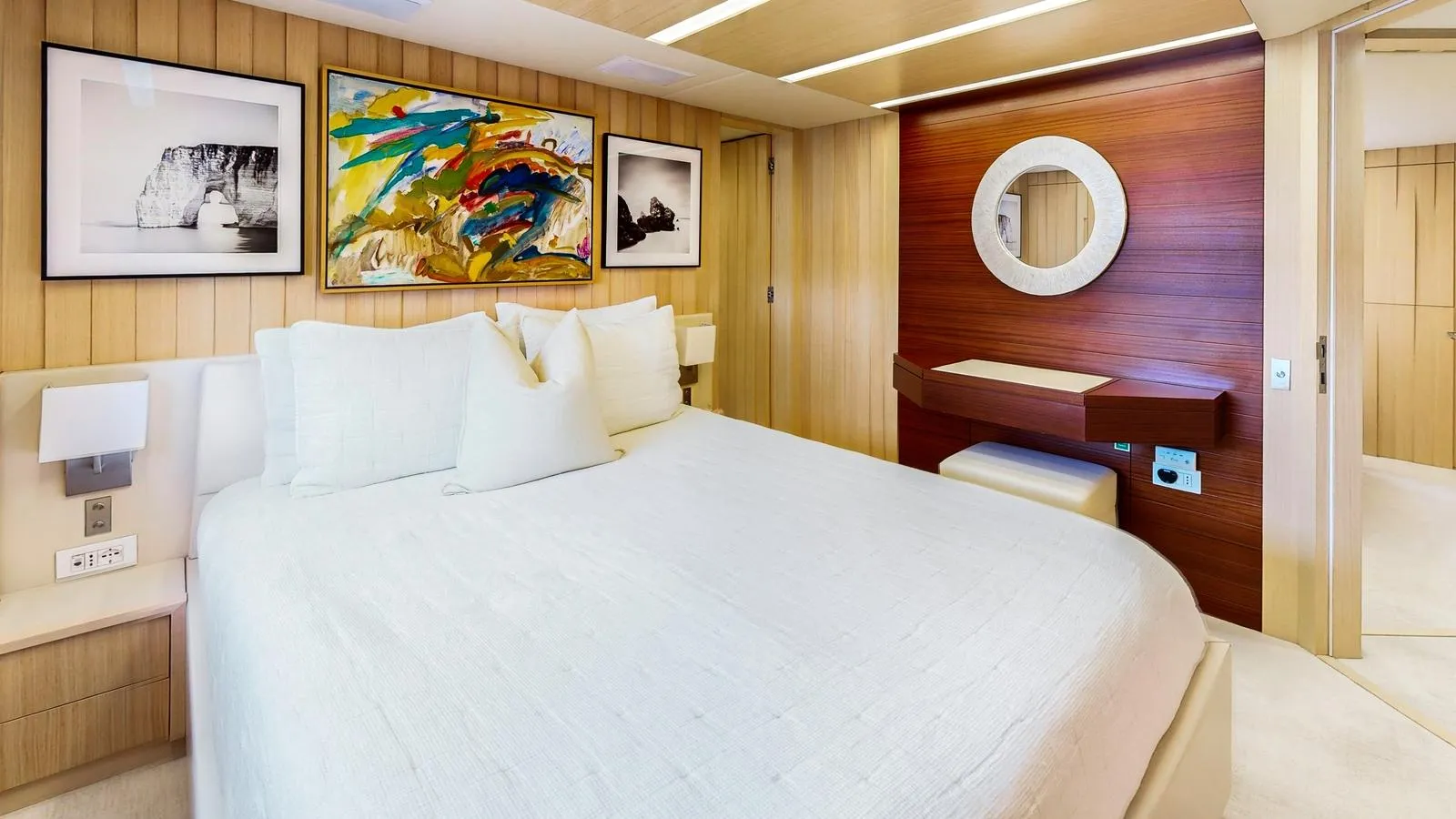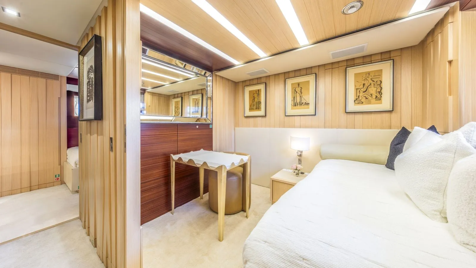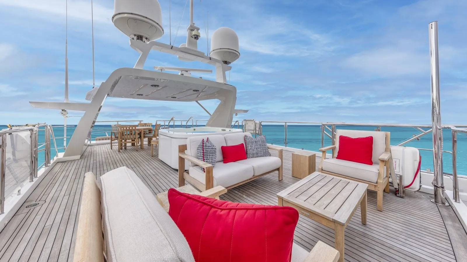 | KEY FEATURES Boasting an On-Deck Full-Beam Master with His/Hers En-suite for Ultimate Relaxation. Indulge in the Full-Beam VIP Suite with Twin Vanities, Jacuzzi Tub, & Separate Shower. Accommodating 8 Guests in 4 Lavish Staterooms, with Space for 6 Dedicated Crew Members. Enjoy the Expansive Decks, Including Aft Al-Fresco Dining, a Swim Platform, & Fore-deck Sunpads. Underwent Extensive Refits in 2014 and 2017, Enhancing Systems, Décor, & Mechanicals. Powered by Twin 1,000-hp Caterpillar 3412 Diesel Engines for a Quiet, Reliable, & Efficient Cruising Experience. Remarkable 254 GT Volume, Setting a New Standard in its Size Class. Features Naiad Active Fin Stabilizers for Enhanced Comfort & Reduced Roll Both Underway & At Anchor. Delivers Excellent Range & Stability With A Semi-Displacement Hull, Offering Up To Approximately 3,685 nm At Cruise. |