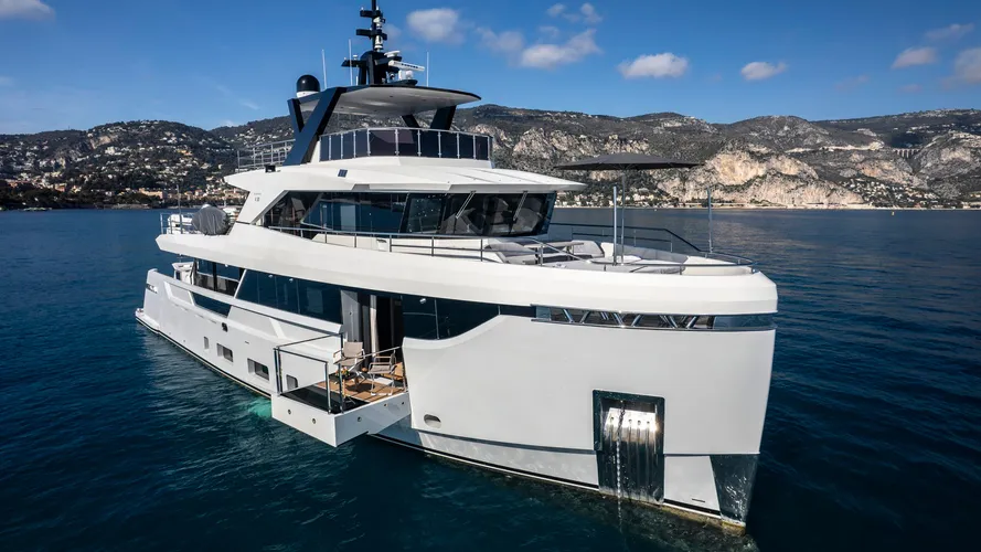 Built in Turkey by Blaundus Yachts, EBYSHINE measures 30.0 m with a 7.03 m beam and a gross tonnage of 290 GT. She is constructed with a steel hull, aluminium superstructure, and teak decks. Powered by MAN engines, she reaches 14 knots and offers a maximum range of 5,000 nm at cruising speed. She accommodates up to 12 guests in five staterooms, supported by a crew of five. Unique Yacht Design is responsible for both the exterior design and naval architecture, with an established portfolio of yachts over 24 metres.