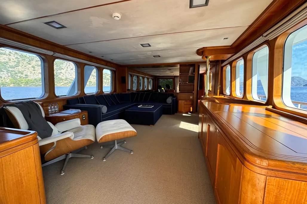 Constructed with a steel hull and aluminium superstructure and finished with teak decks, Eunoia is powered by twin MTU 12V 183 AA 91 diesel engines (404 hp each). She cruises at 9 knots with a top speed of 11 knots, and carries 3,000 litres of fresh water.
