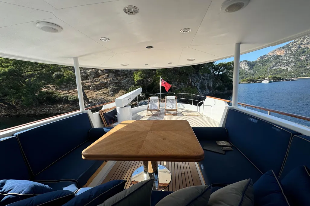 Eunoia accommodates up to 8 guests in 3 suites and supports a crew of 4, ensuring a comfortable and attentive onboard experience.