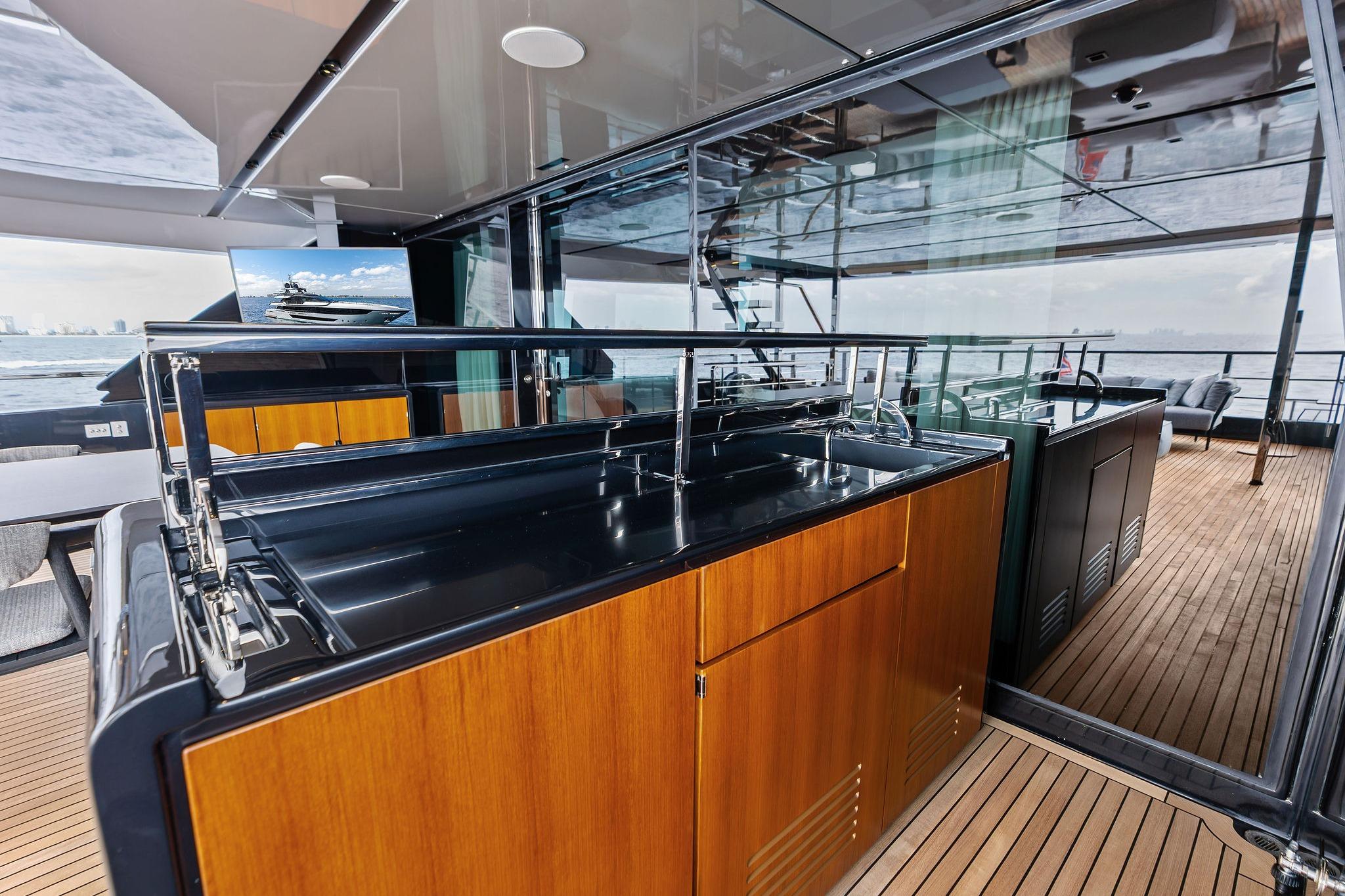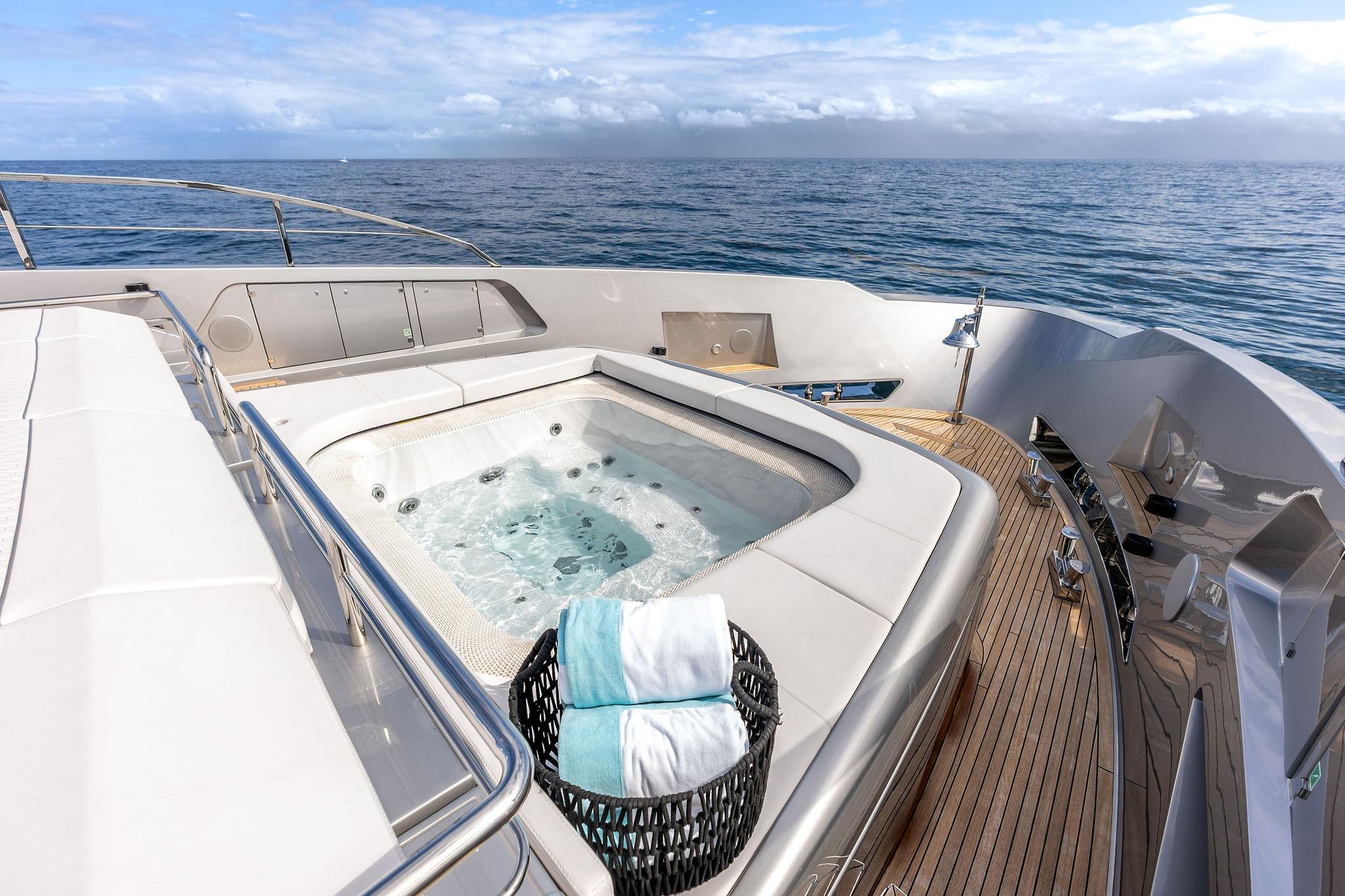 - Multiple awnings: three foredeck, two sundeck, one skylounge, one beach club