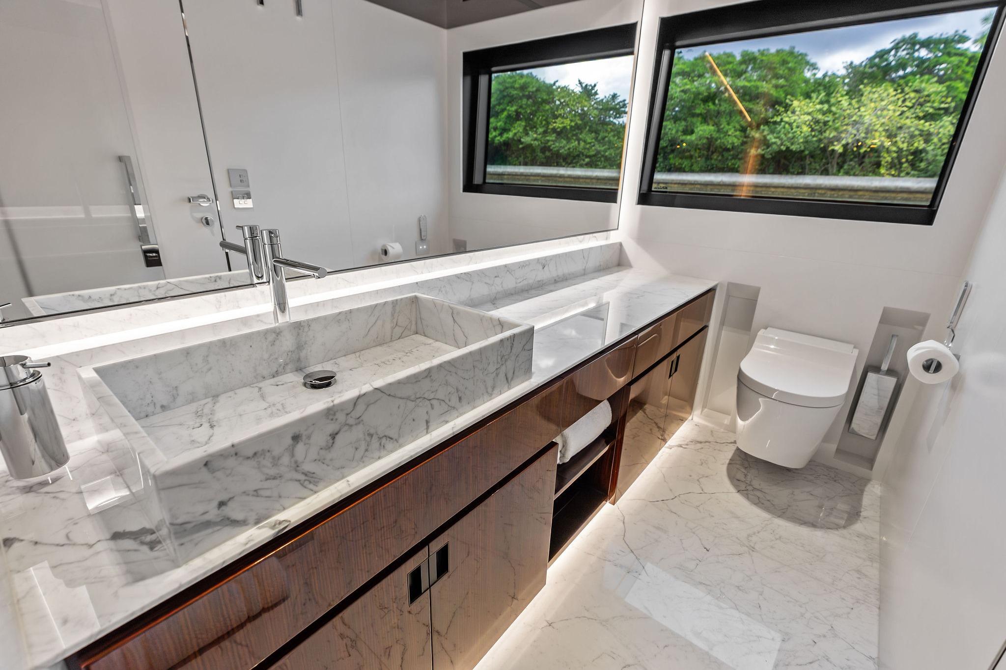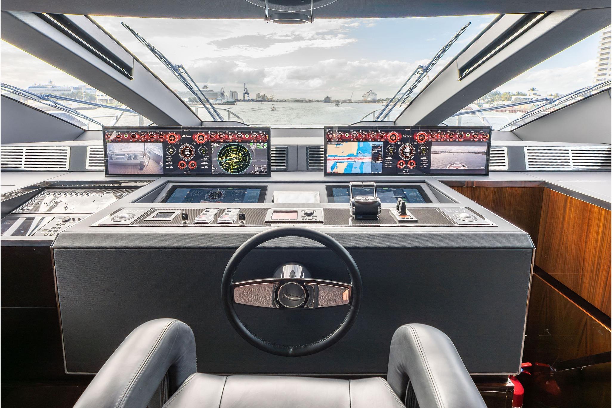 - Zero‑speed stabilizers, dual Seakeeper 35s, bow and stern thrusters