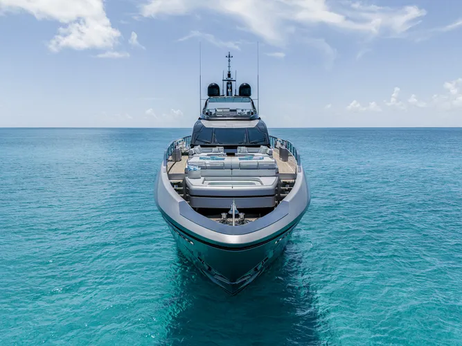 The RIVA 130 Bellissima EURO is an exceptional example of luxury yacht craftsmanship, commissioned by an experienced owner and maintained to the highest standards by a professional crew. The yacht features a main‑deck master suite, four en‑suite guest staterooms, a custom rosewood interior, and a distinctive silver‑and‑black exterior.
