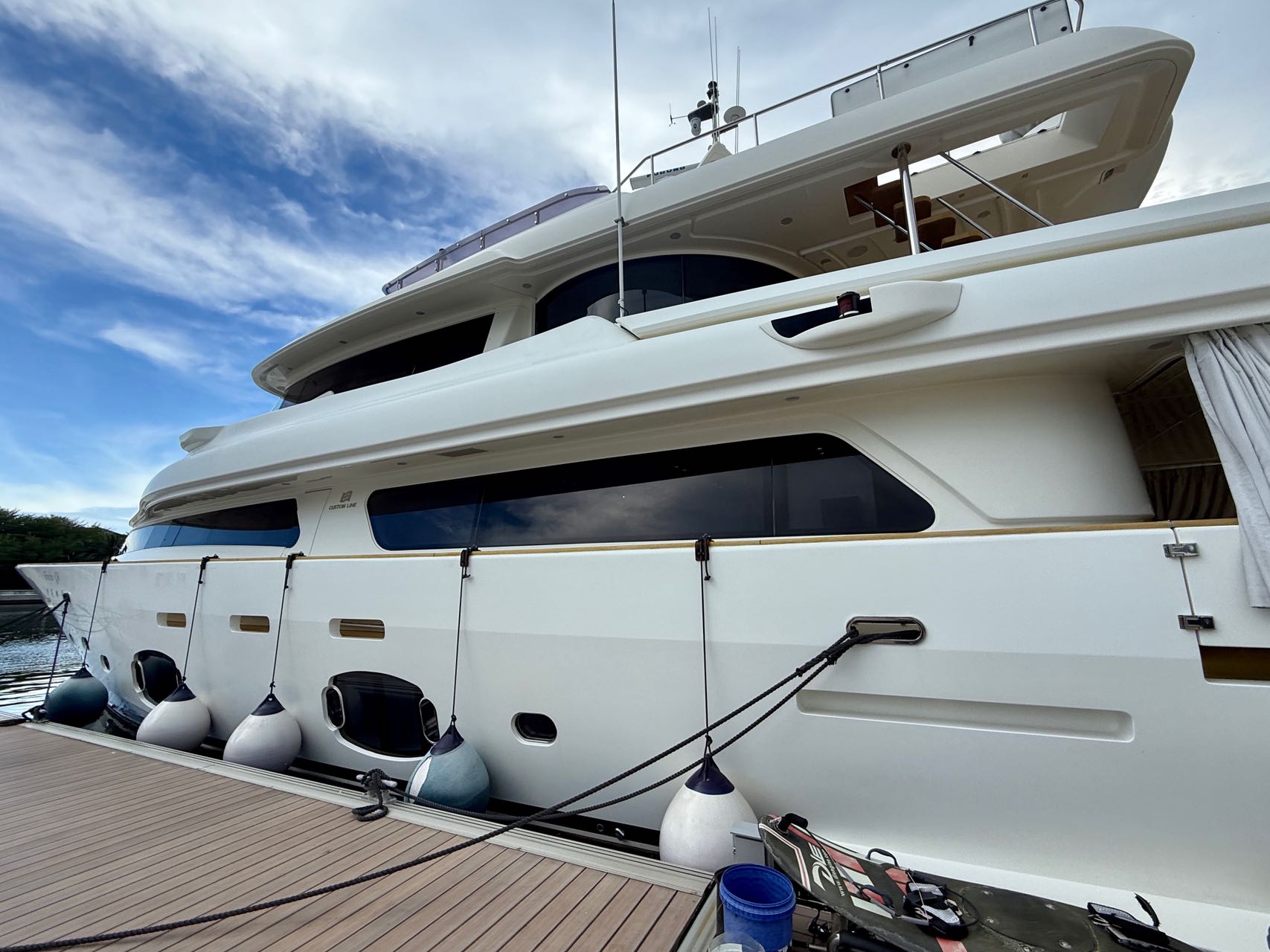Introducing EVELYN Qi the magnificent 2015 Customline N33, a superb example of Italian yacht craftsmanship. This 108-foot vessel, powered by dual MAN engines boasting a combined horsepower of 2800, achieves speeds up to 17 knots while cruising comfortably at 15 knots. Built by Ferretti with design expertise from Zuccon International Project and naval architecture from Ferretti Engineering Department, it remains in impeccable condition thanks to its attentive crew maintaining low engine hours since delivery.