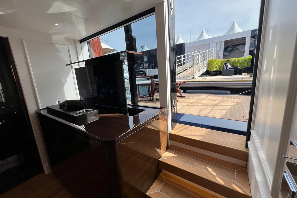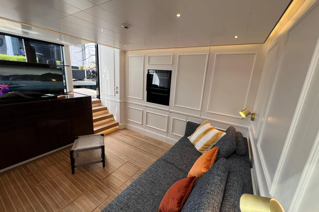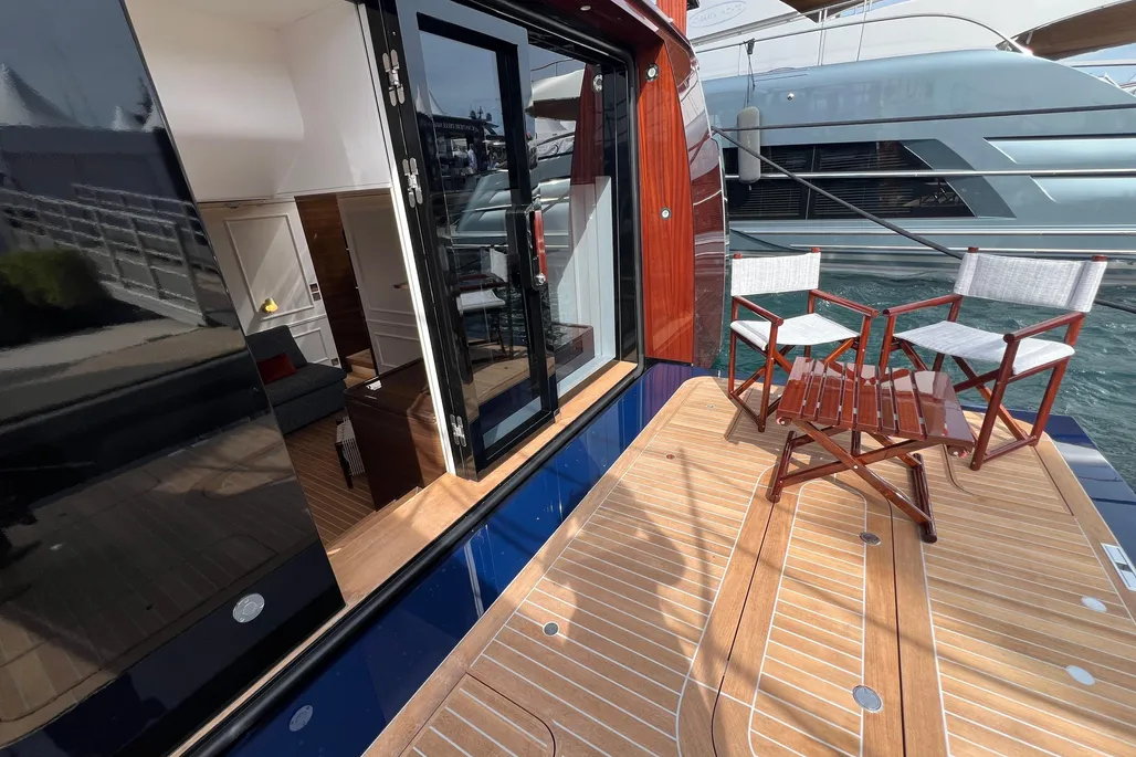 Built on a semi-displacement aluminum hull, she boasts a 21’4″ beam and a 4’11” draft, with an internal volume of 160 Gross Tonnes. This marks the first in the Gentleman’s Yacht 24 series.
