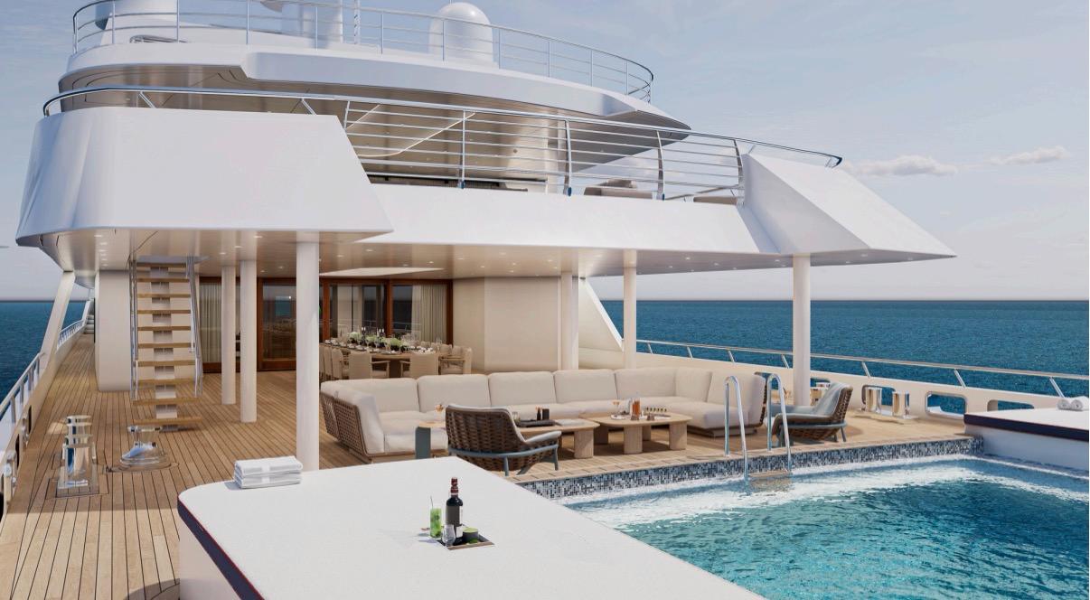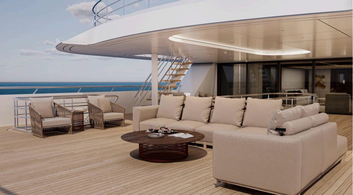 This refit follows a 2017 interior renovation that introduced a main‑deck dressing room and updated all carpets and upholstery. The 2025 program will further enhance guest and owner spaces, including relocating the master cabin to the upper‑deck bow, where it will feature a private terrace and pool. The main swimming pool is being repositioned for improved sun exposure, and all exterior areas are being enlarged. Interior and exterior furnishings are being fully customized to achieve a refined and contemporary aesthetic. Throughout the project, the timeless design language of Blohm & Voss remains central, ensuring a seamless blend of classic elegance and modern functionality.