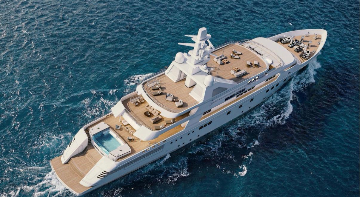 The 80‑meter superyacht Grand Ocean is currently undergoing an extensive exterior and interior refit at MIRA Yachts. The project includes a 5.5‑meter extension to the aft section, increasing the vessel’s overall length to 85.5 meters. All decks are being expanded, and an additional deck has been added to improve onboard space and functionality. A touch‑and‑go helipad has also been reinstated on the sundeck.