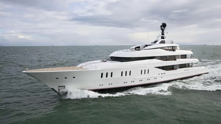 Powered by twin MTU diesel engines, she reaches a top speed of 17.5 knots and boasts an impressive 5,200-nautical mile range at cruising speed. With 6 staterooms for up to 12 guests and accommodation for 17 crew, she balances comfort and performance. Her 1,481 GT volume and 11.8m beam provide generous space throughout.