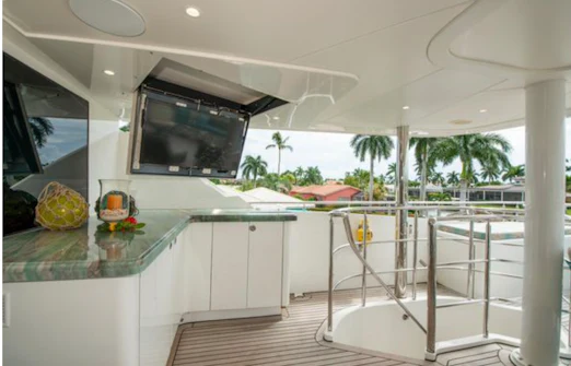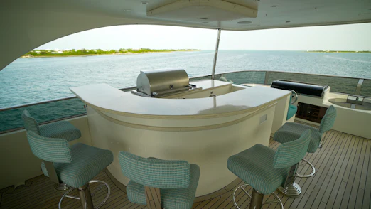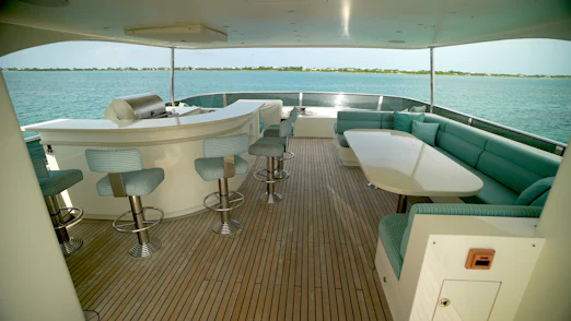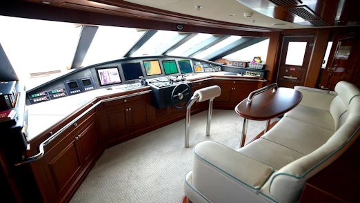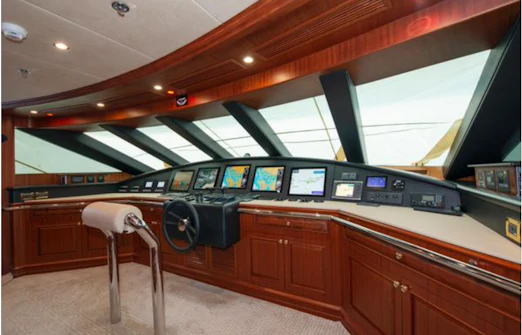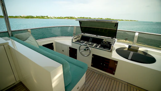 - Custom flybridge helm station for optimal command.