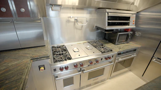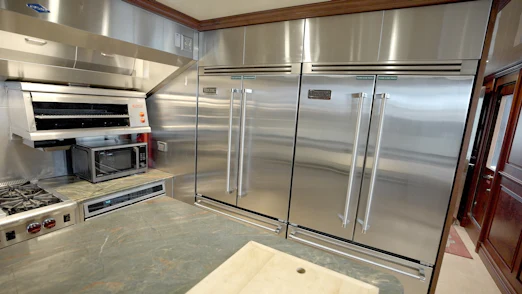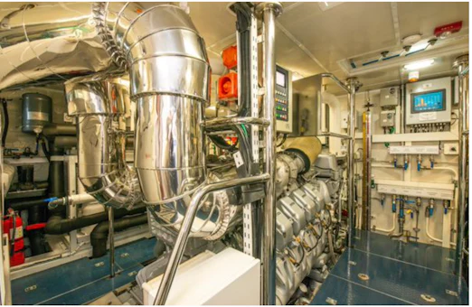 Powered by robust MTU 8V 4000 M70 engines, HOMECOMING cruises smoothly at 10.5 knots and reaches speeds up to 16.5 knots. Large STAR fin stabilizers, American Bow Thruster systems, and five-bladed ZF bronze propellers ensure stable, comfortable voyages. Twin Onan 65 kW generators, dual 100-amp shore power, and state-of-the-art electronics—managed by Savant Pro app controls—keep operations seamless.