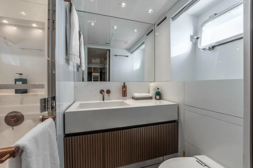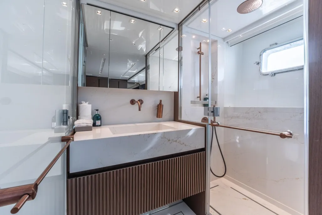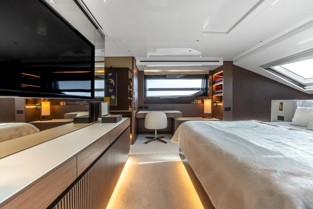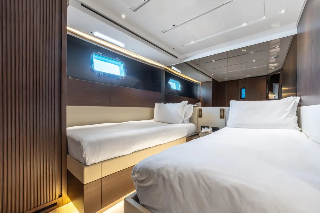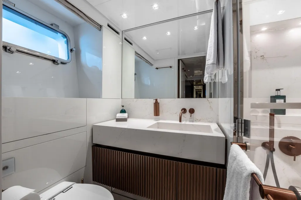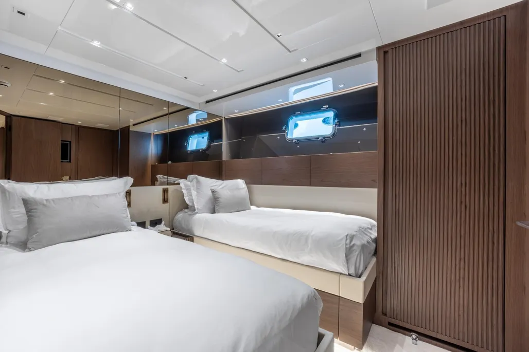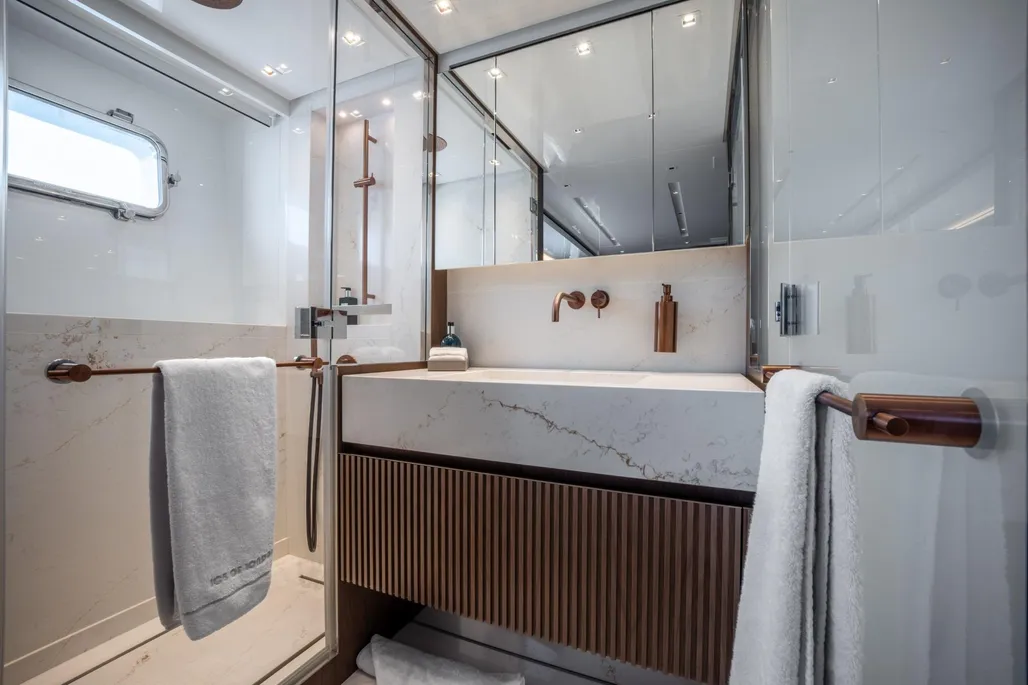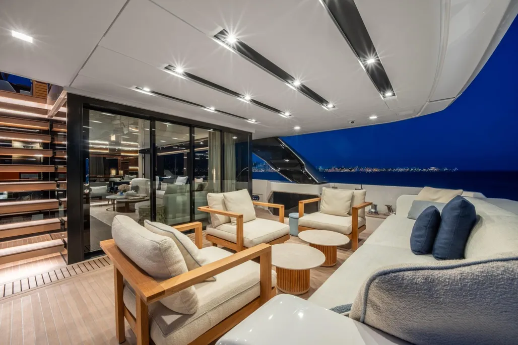 Delivered in 2025 and still under full shipyard and engine warranty, ICE OF LONDON is the most highly specified SL96A built by Sanlorenzo. She is the first in the series to feature dual stabilization—combining fins with two gyroscopic stabilizers—to ensure exceptional comfort both underway and at anchor.