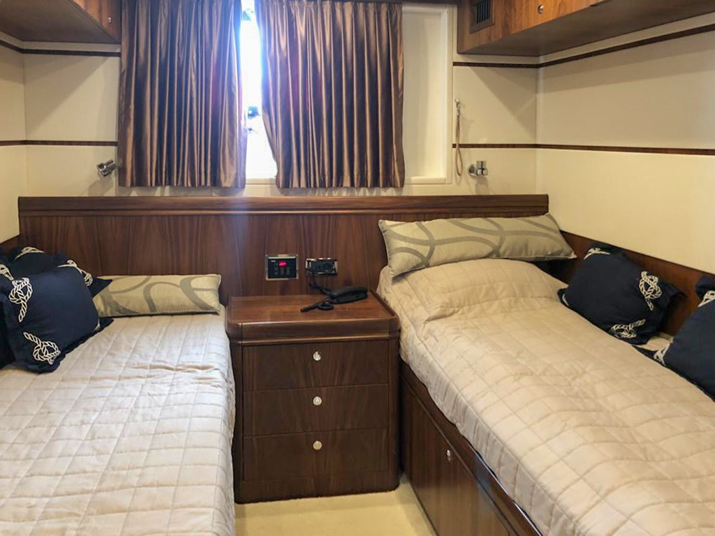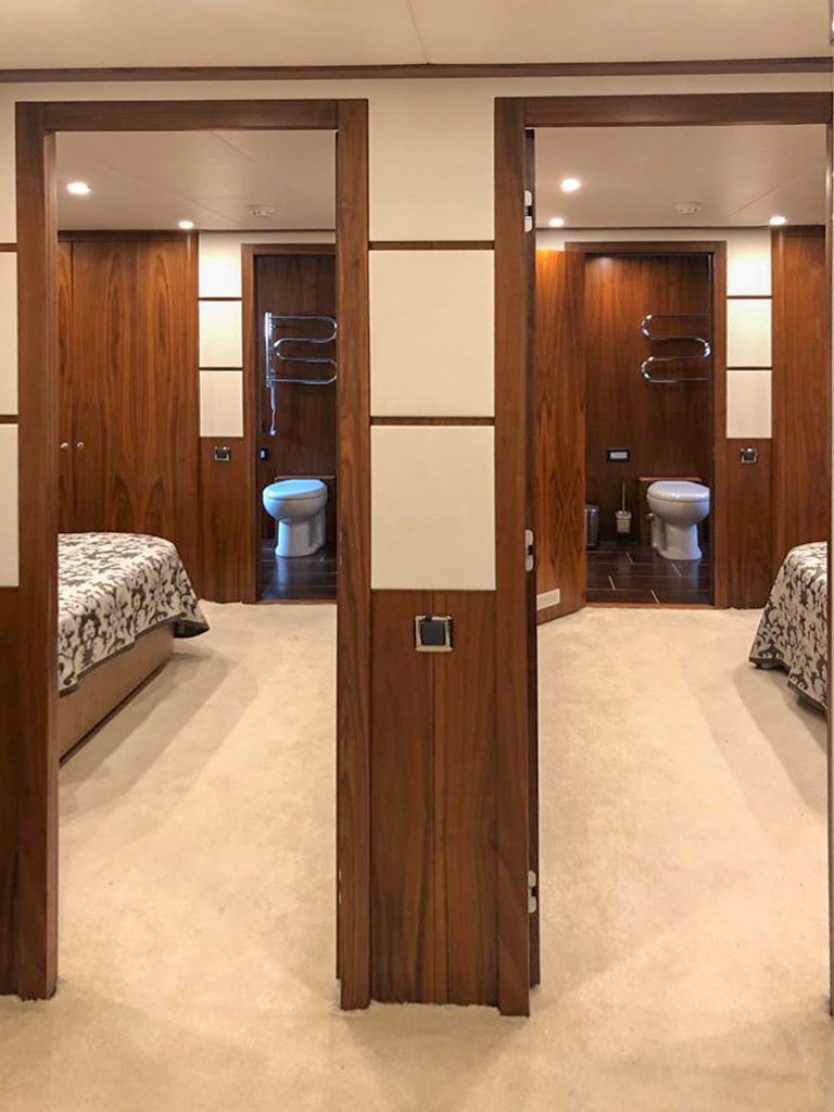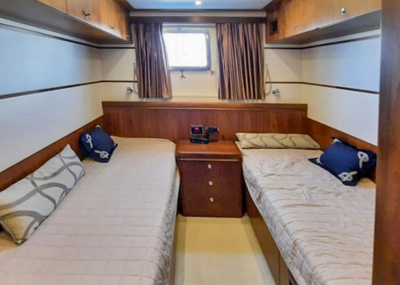 Ivar welcomes up to 12 guests in luxurious comfort across 6 staterooms, attended by a dedicated crew of 4 to cater to your every whim. Her spacious 7.2-meter beam ensures ample room for relaxation and adventure.
