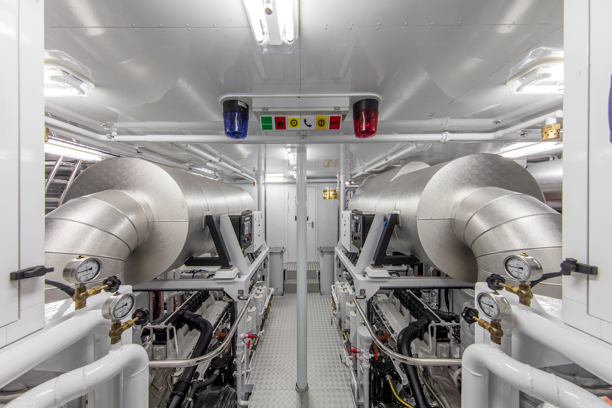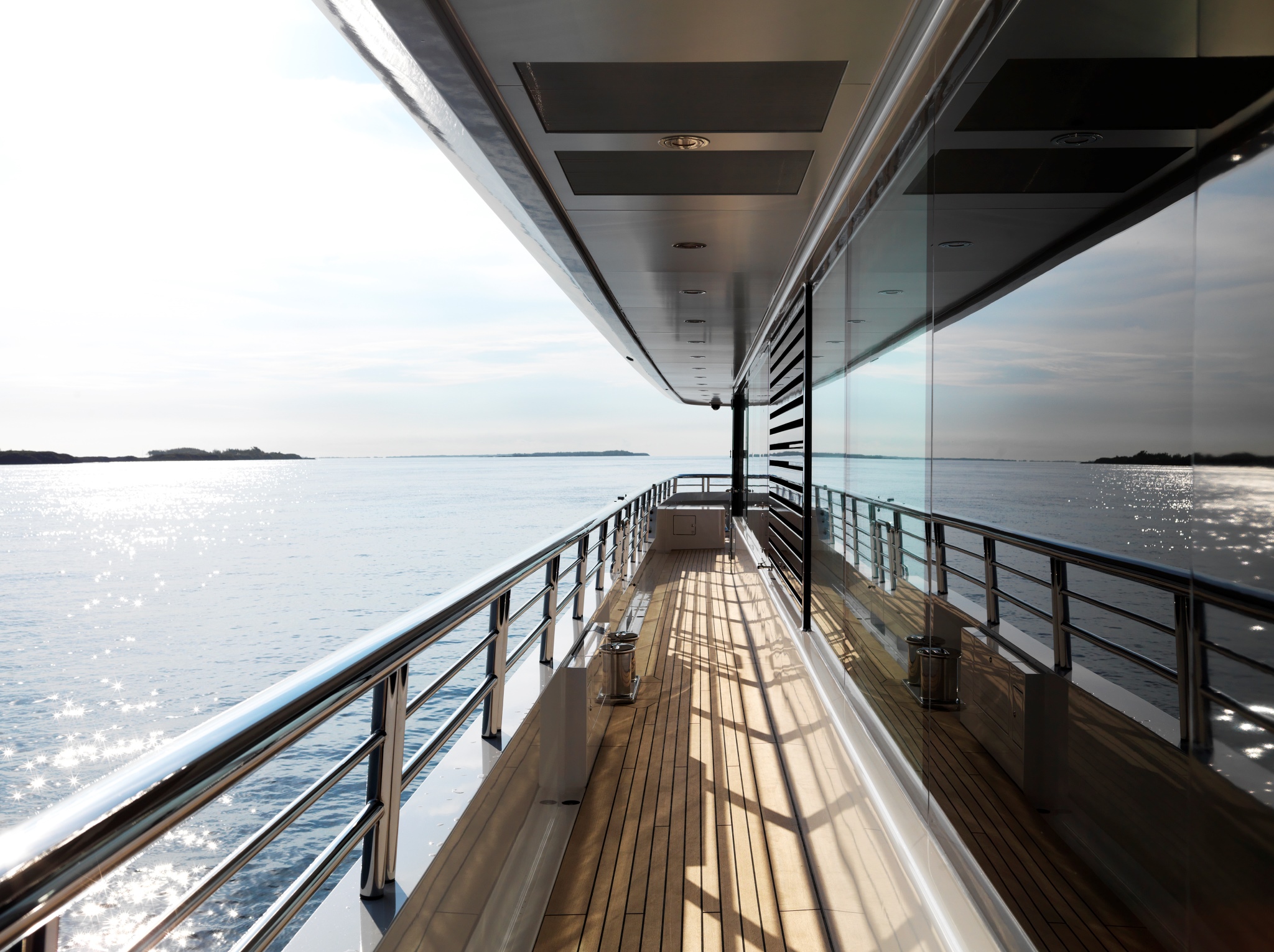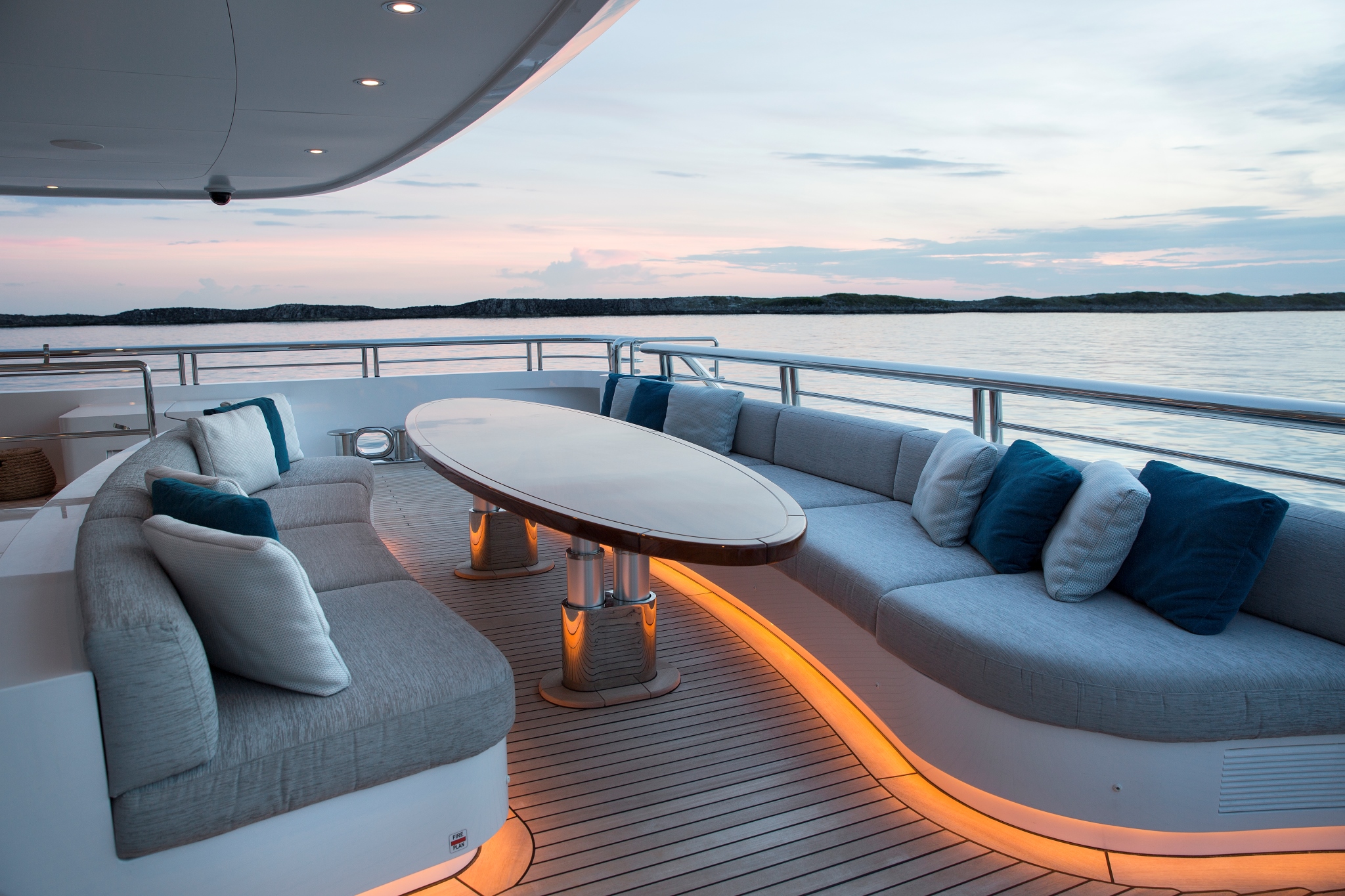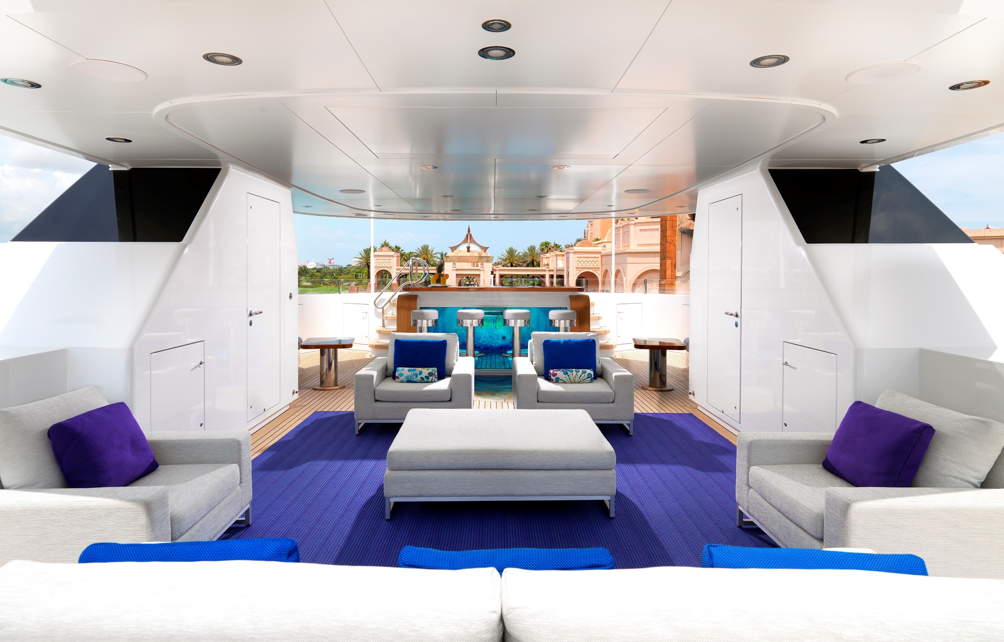 Key features include a custom‑built elevator, a spacious lazarette gym, and a large tender garage housing four jetskis with port and starboard launch. Her sun deck features a 3×2‑metre pool, adding to her strong lifestyle appeal.
