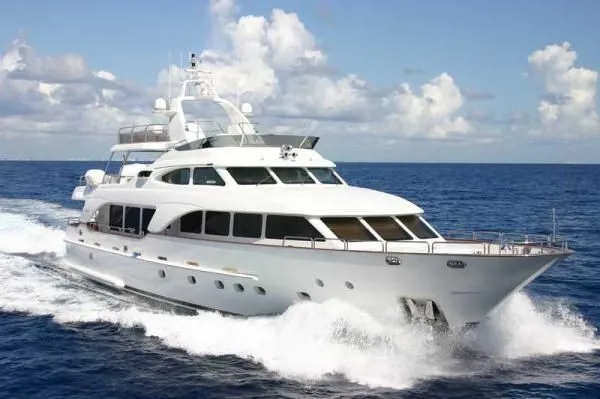 Powered by twin 1,000 hp Caterpillar diesel engines, she reaches a top speed of 15 knots, cruises comfortably at 13 knots, and offers a maximum range of approximately 2,100 nautical miles at 10 knots. She accommodates up to eight guests in four en‑suite cabins, including a full‑beam master suite on the main deck, supported by a crew of five.
