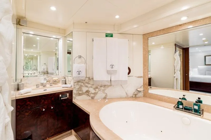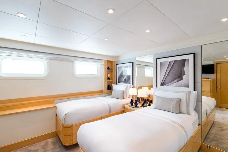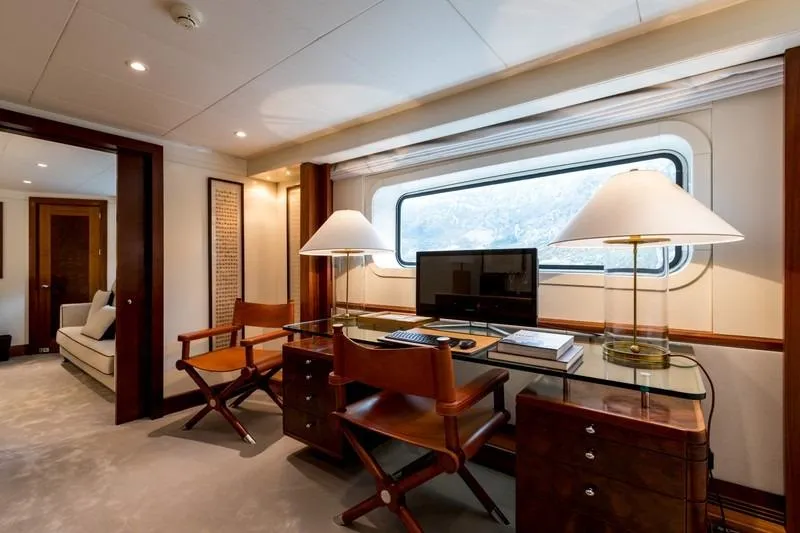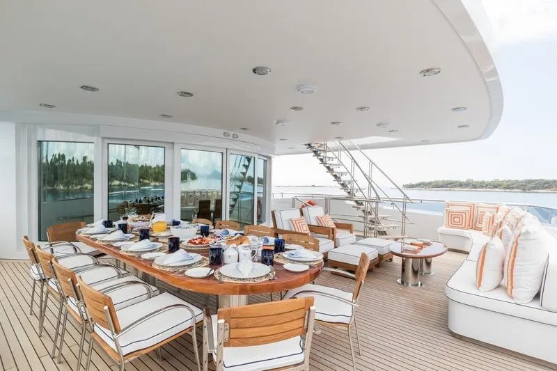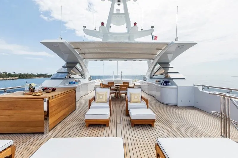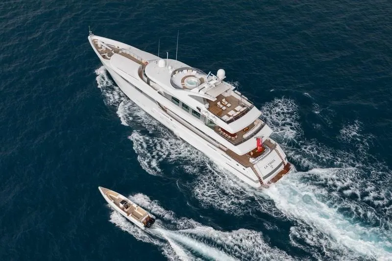 With a generous 640GT, LA TANIA welcomes up to 11 guests in five elegant cabins, including a spacious main deck owner’s suite with private office, plus a sought-after triple guest cabin. Her expansive sun deck, multiple lounging areas, and large, well-equipped garage create the perfect setting for relaxation and adventure.