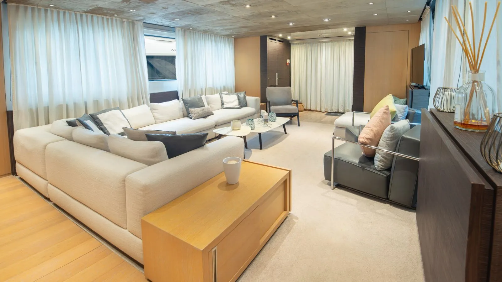- Exterior: Expansive decks for relaxation and entertainment, including alfresco dining areas and sunbathing spaces.